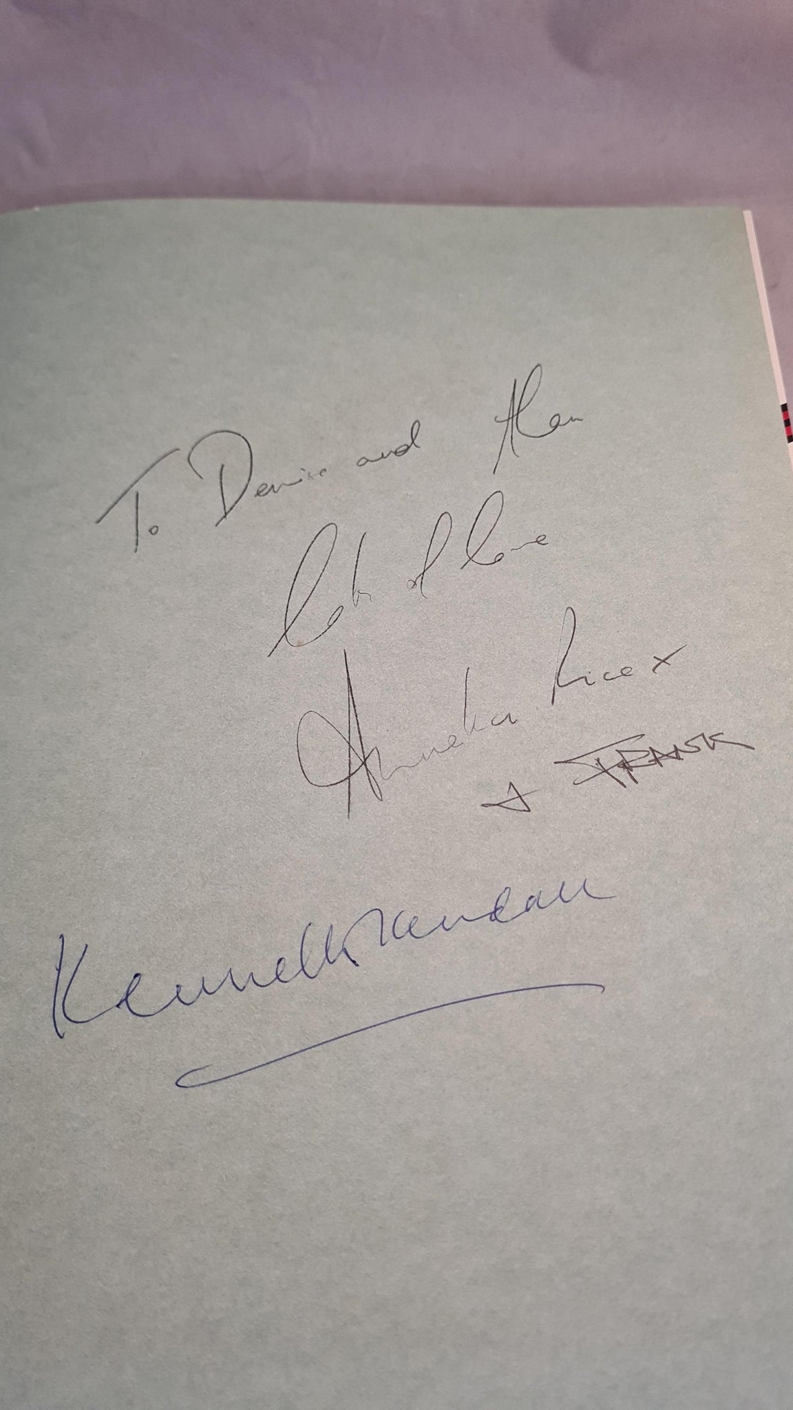Signed and Inscribed "To Denise and Alan, lots of love Anneka Rice, Frank, Kenneth Kendall".
