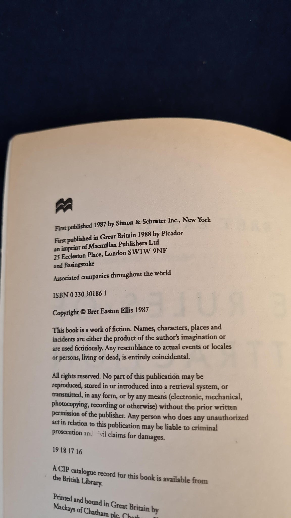 Bret Easton Ellis - The Rules of Attraction, Picador, 1987, Paperbacks