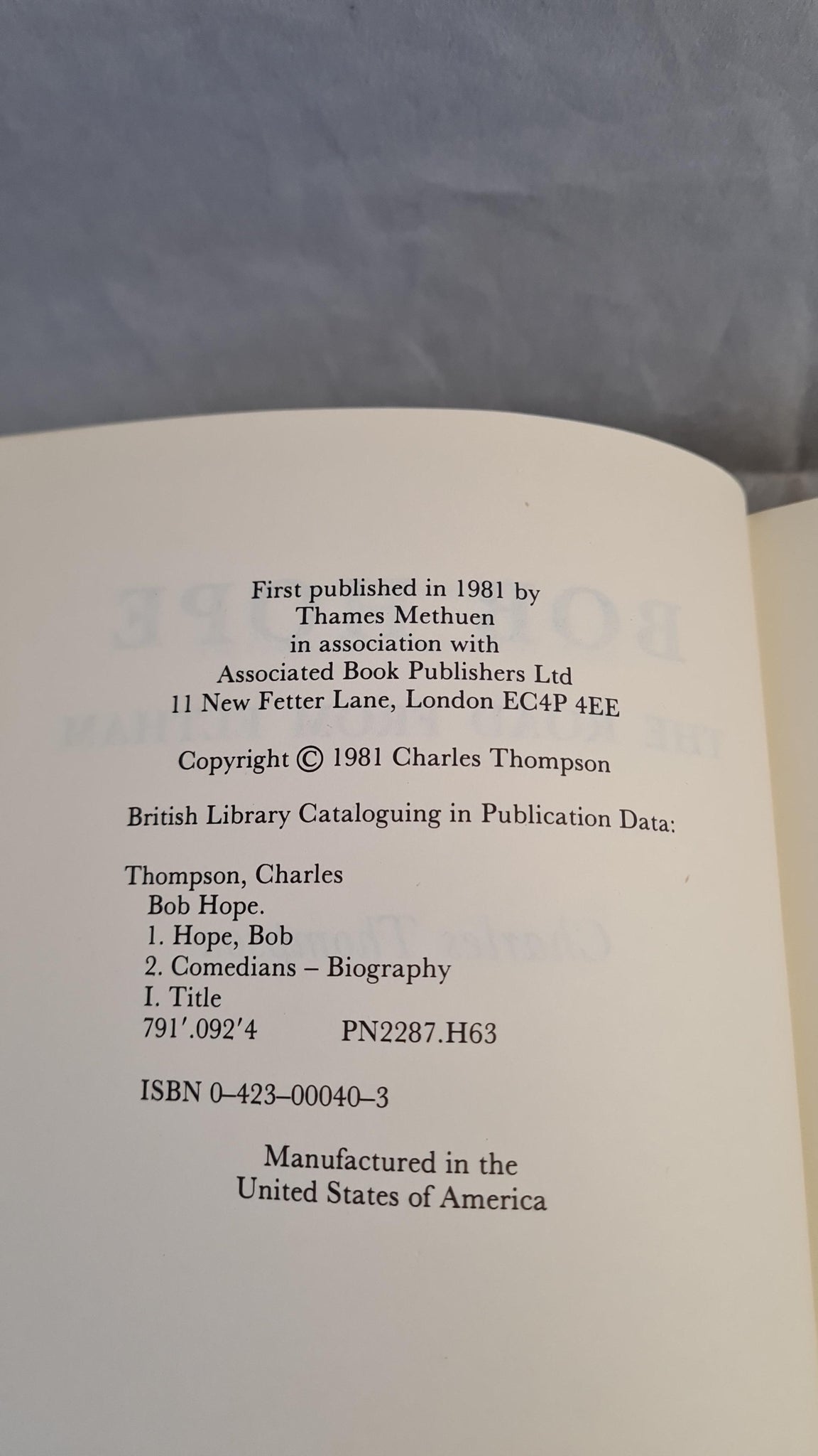 Charles Thompson - Bob Hope, The Road From Eltham, Thames Methuen, 1981, First Edition