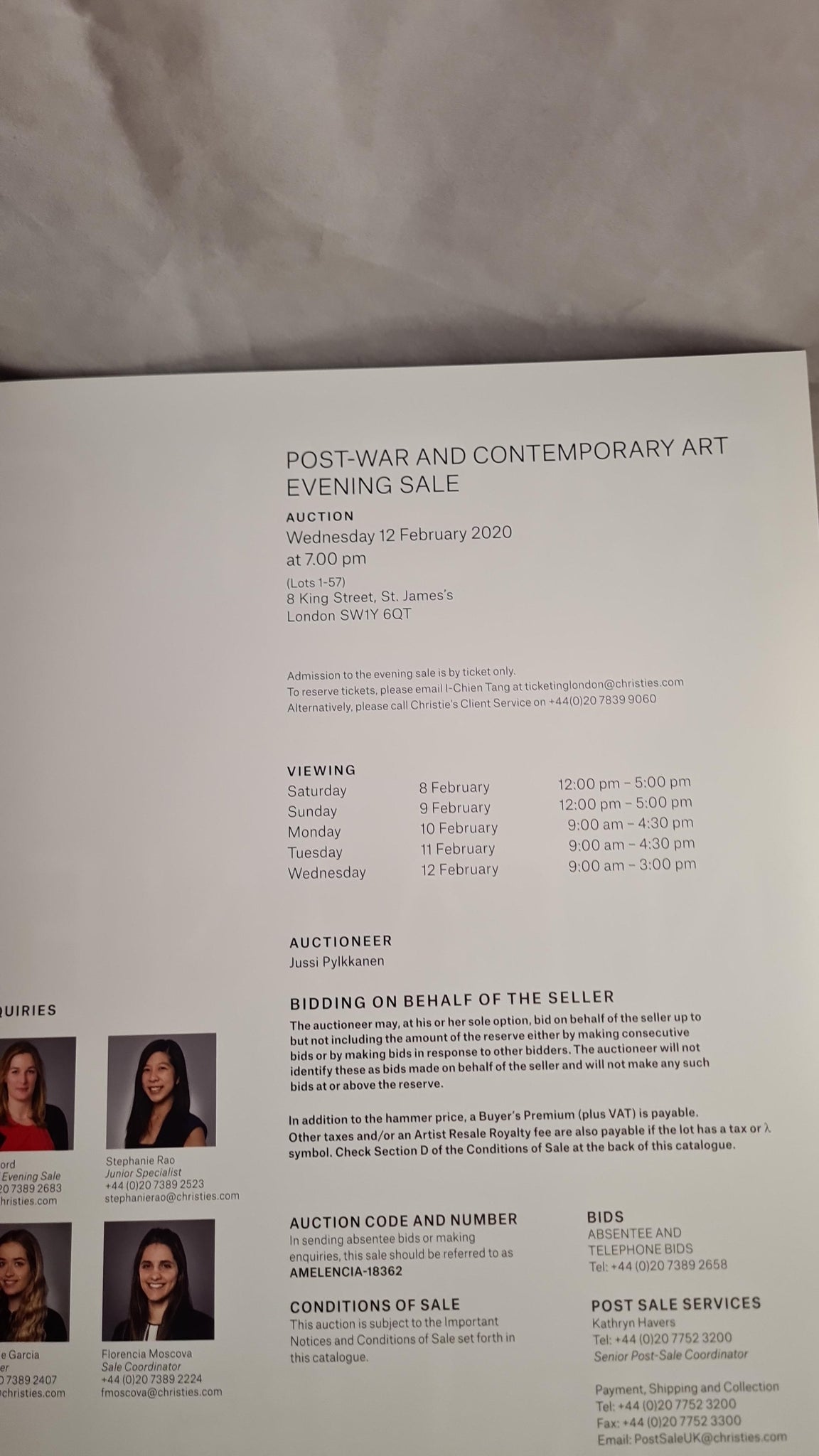 Christie's Auction 12 February 2020, Post-War & Contemporary Art, London