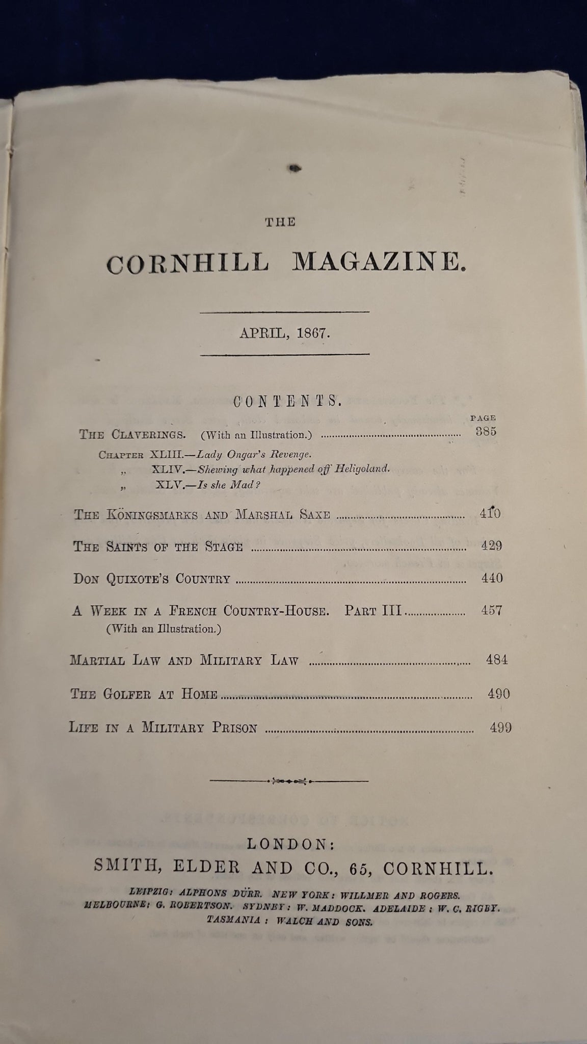Cornhill Magazine April 1867, Smith, Elder & Co.