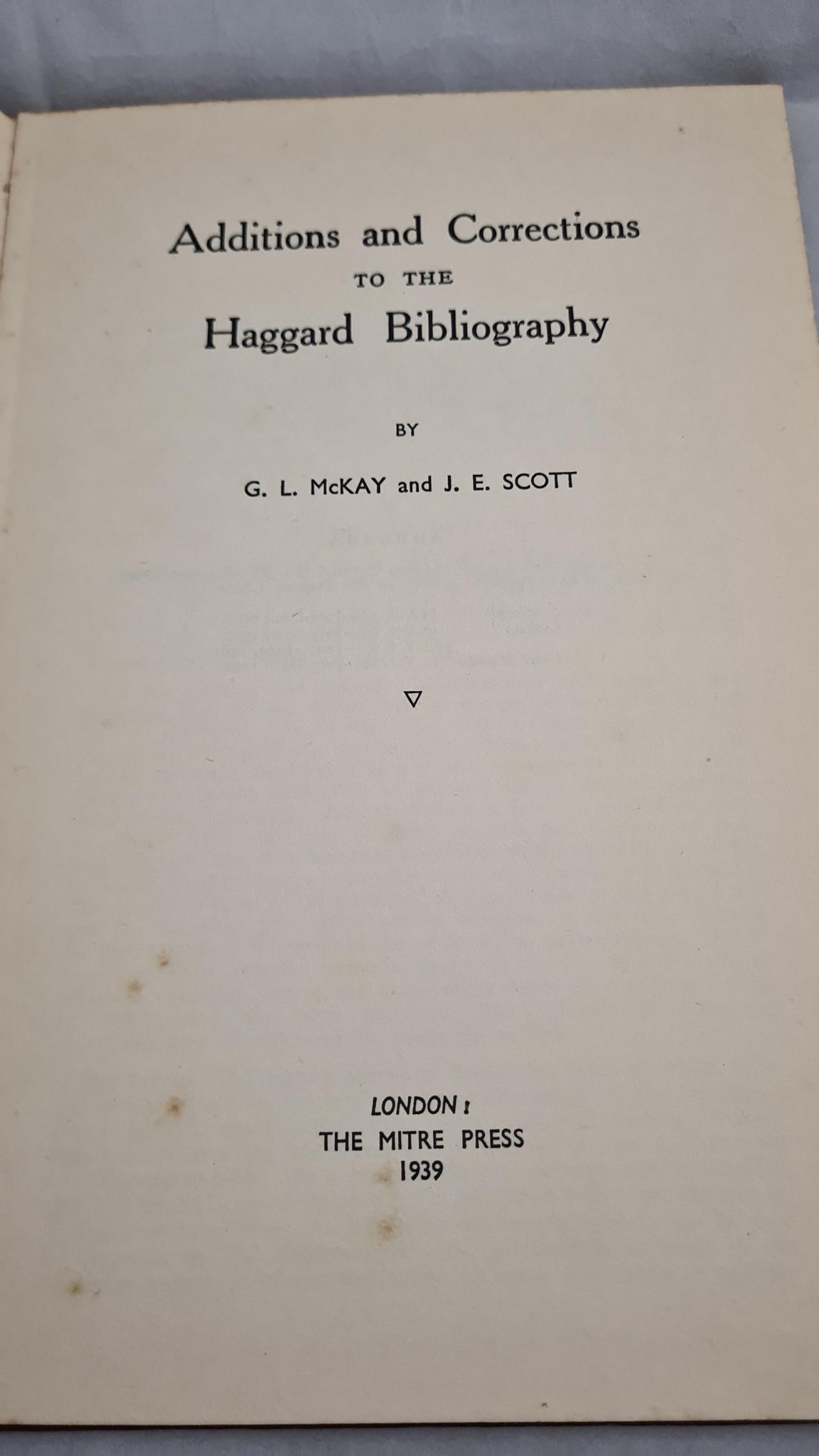 G L McKay - Additions & Corrections to the Haggard Bibliography, The Mitre Press, 1939