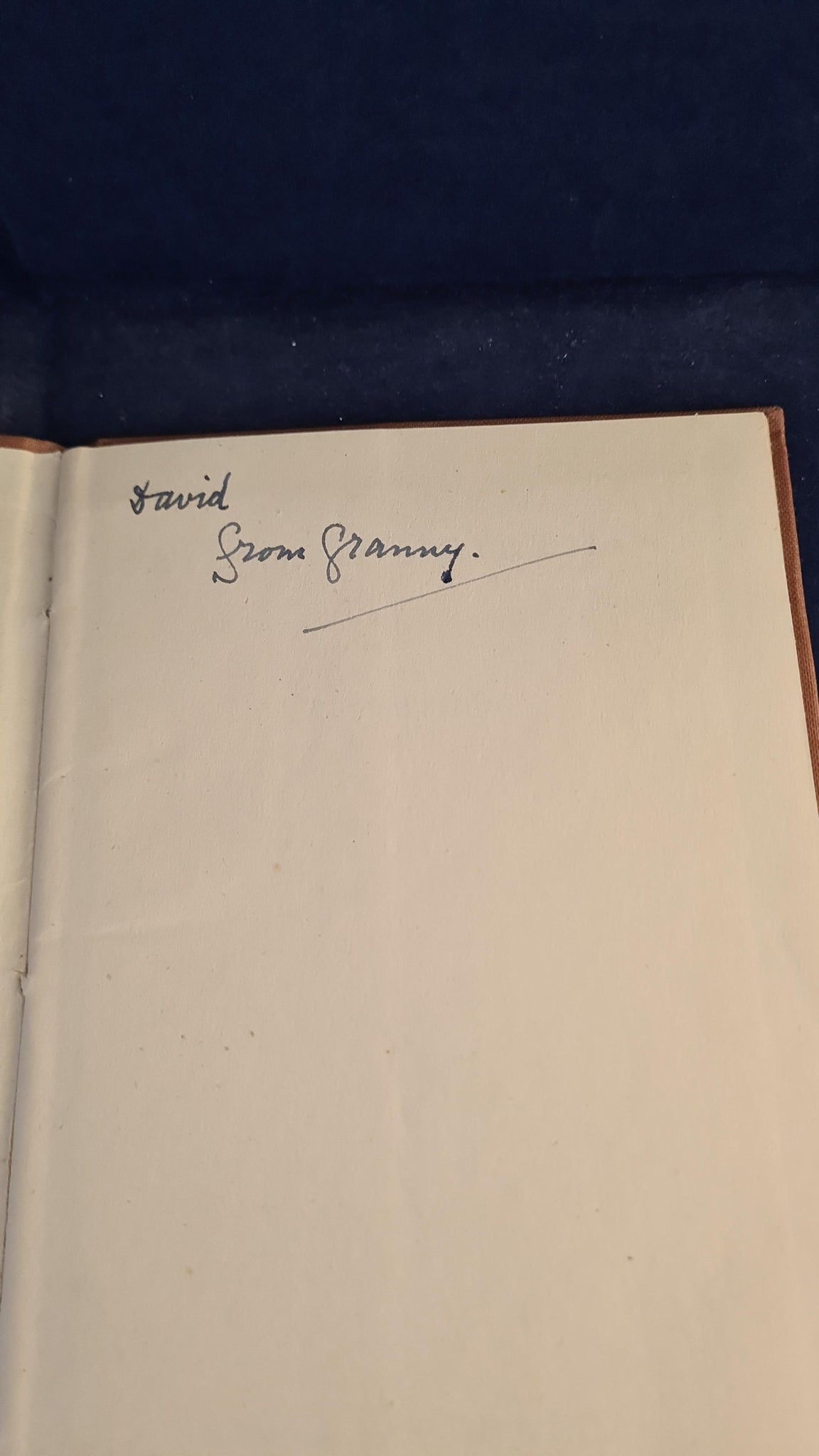 Brown cloth with torn dust jacket in fair condition.  Creased boards.  Dust jacket torn in two, down spine.  Faded gilt to cloth.  Previous owners inscription on endpaper.  Text firm and clean.  Tanning and stains to dust jacket with bumps and tears.