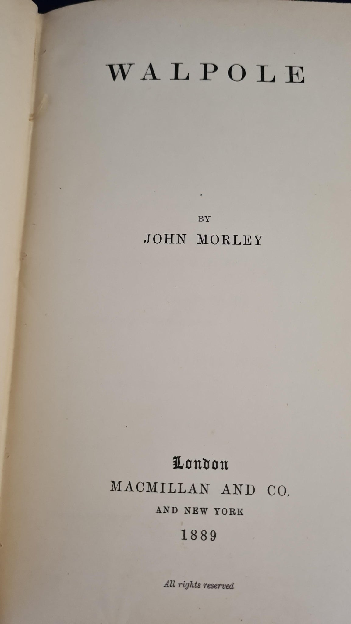 John Morley - Walpole, Macmillan, 1889, First Edition, Twelve English Statesman series