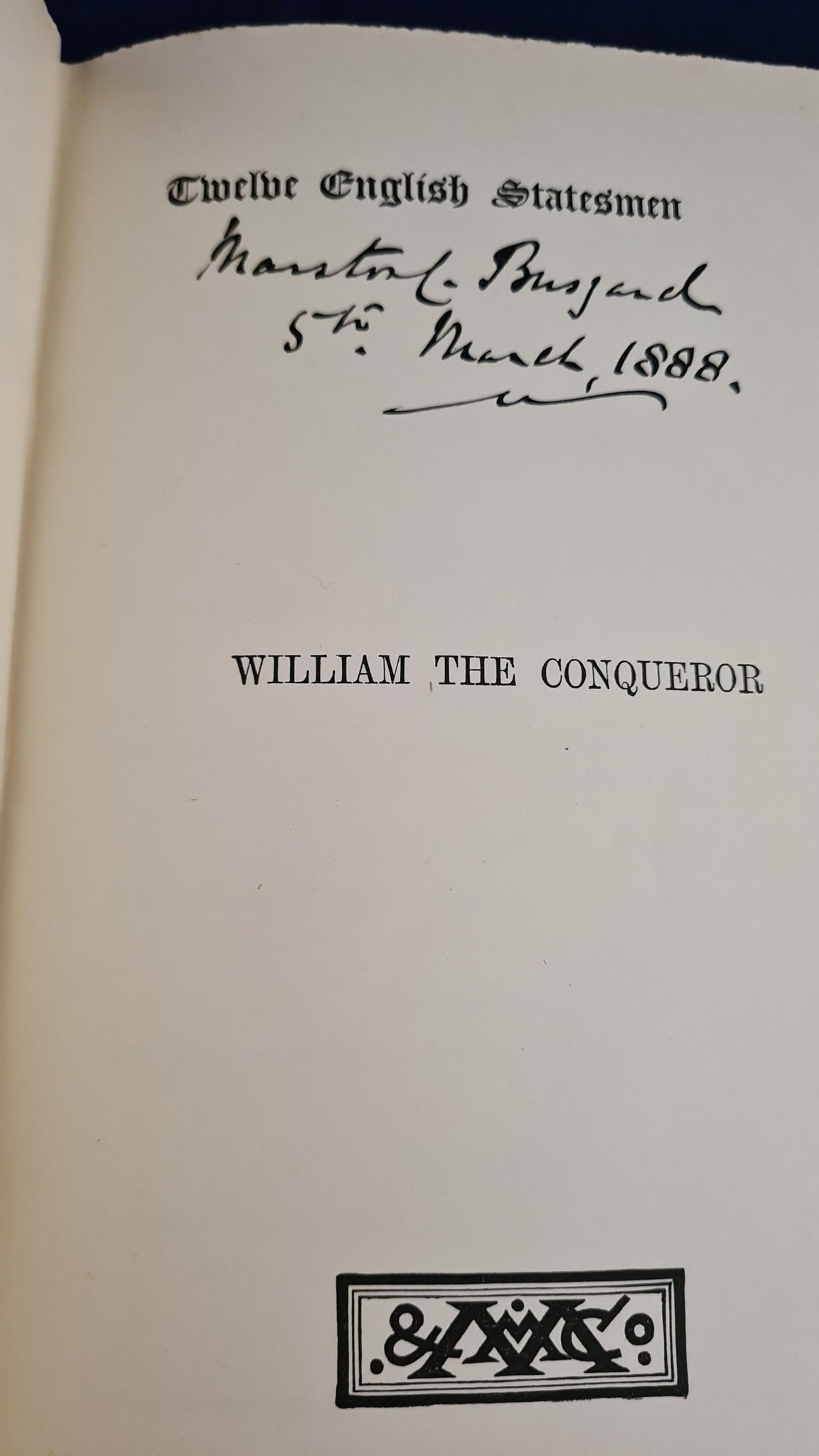 Eight hardcovers in fine condition. Name and date on half title pages. H D Traill - William The Third, 1888. Edward Spencer Beesly - Queen Elizabeth, 1892. Mrs J R Green - Henry The Second, 1888. J R Thursfield - Peel, 1891. James Gairdner - Henry The Seventh, 1906. Edward A Freeman - William The Conqueror, 1888. Mandell Creighton - Cardinal Wolsey, 1888.
