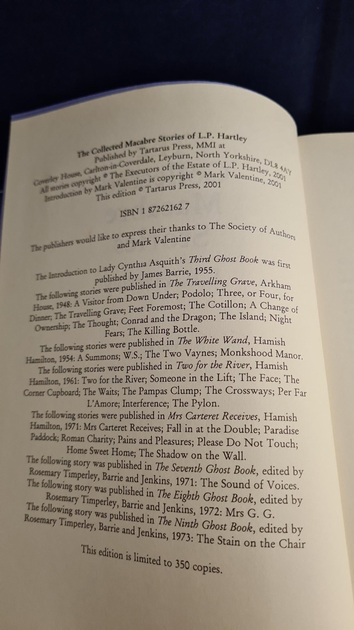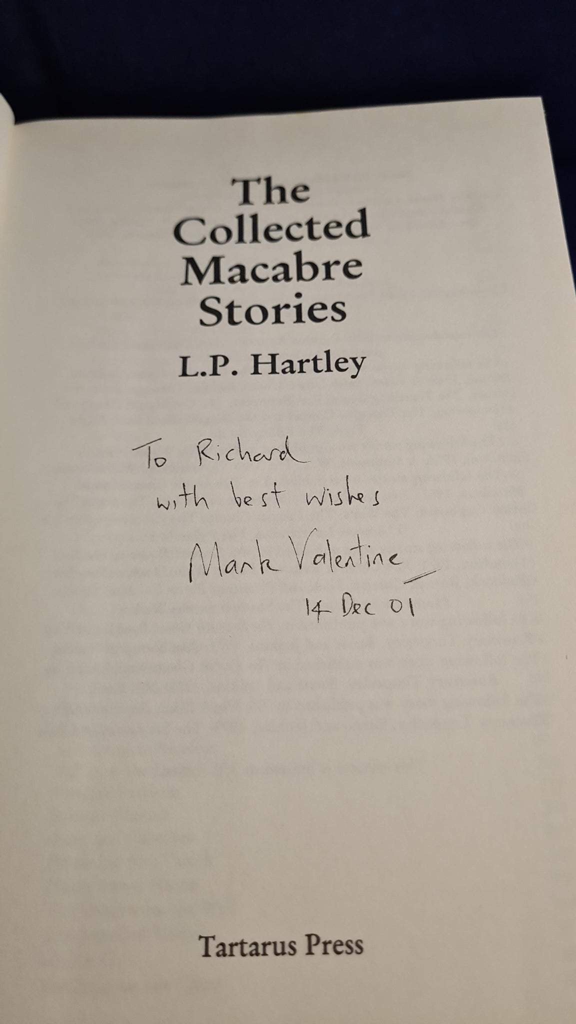 L P Hartley - The Collected Macabre Stories, Tartarus, 2001, First Edition, Signed Mark Valentine
