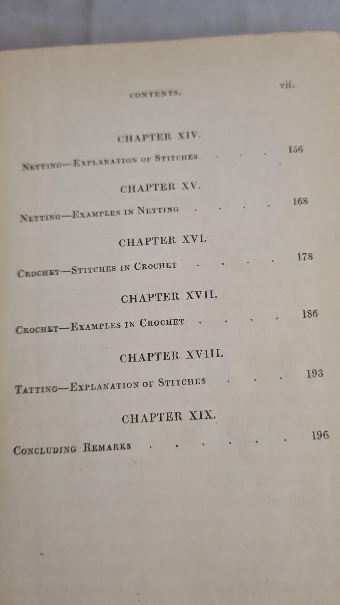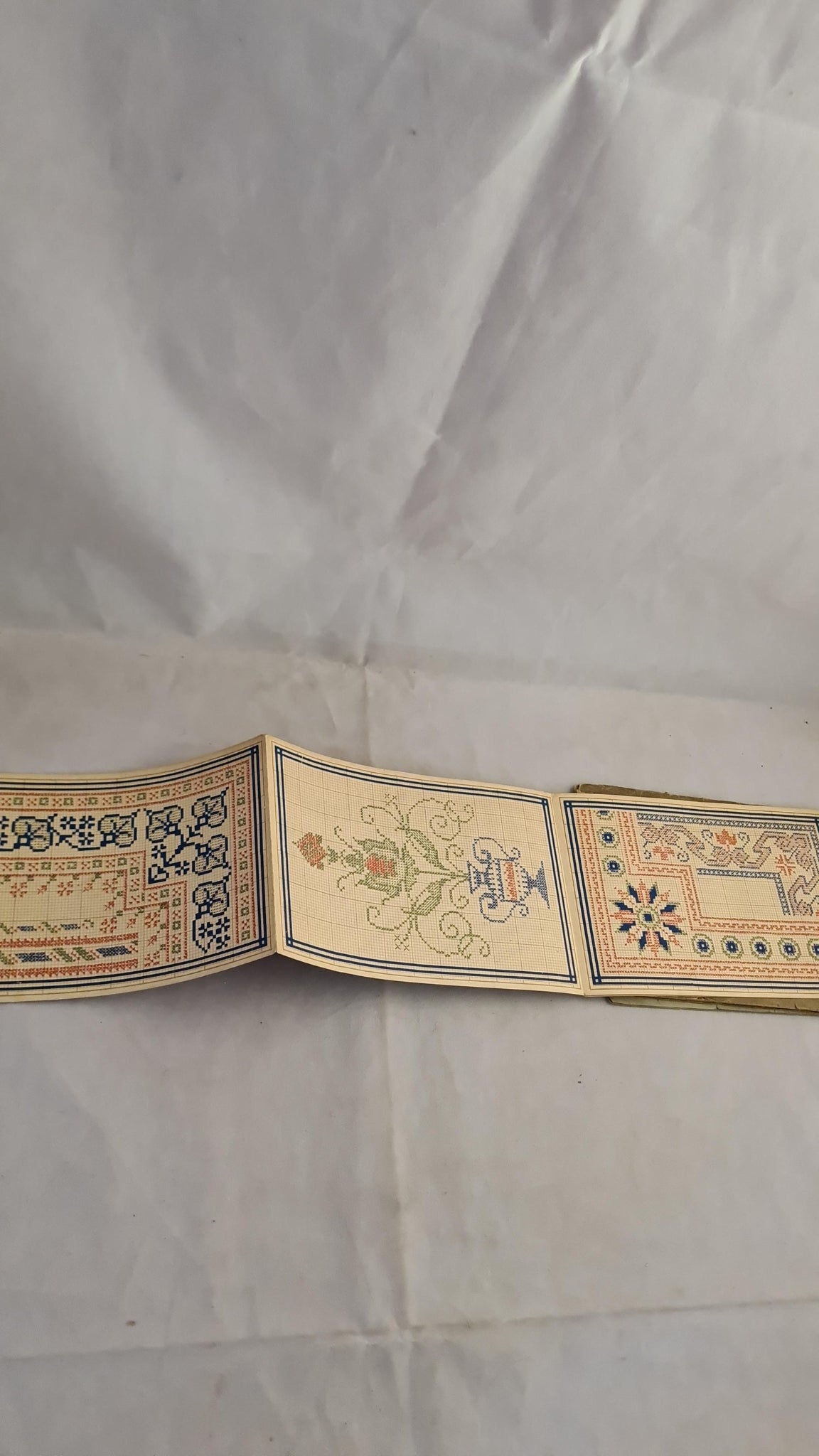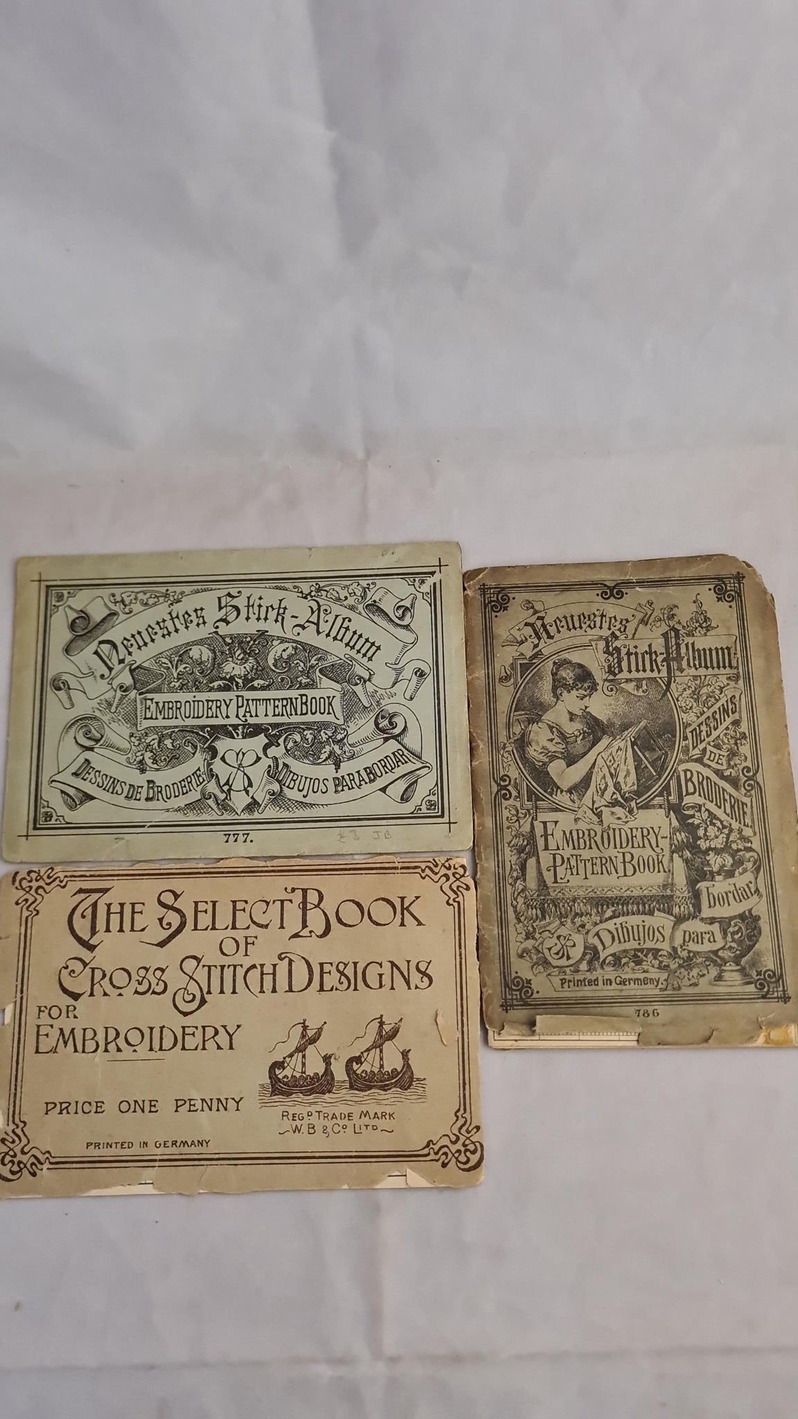 Containing clear and practical instructions in Plain and Fancy Needlework, Embroidery, Knitting, Netting, Crochet, and Tatting. Plus three very old concertina Embroidery Pattern books.