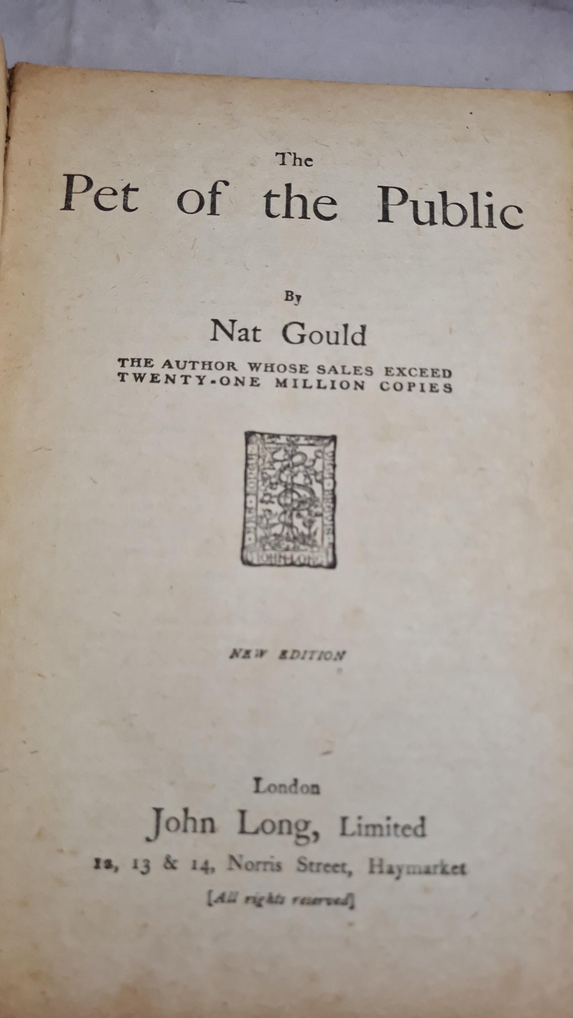 Nat Gould - The Pet of The Public, John Long, no date