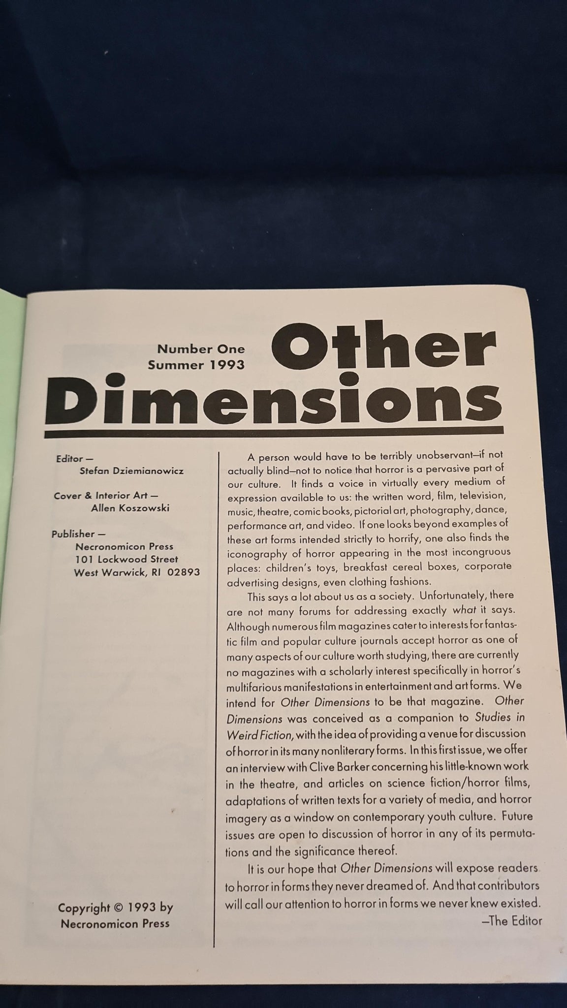 Editor Stefan Dziemianowicz - Other Dimensions, Number 1, Summer 1993, Necronomicon Press