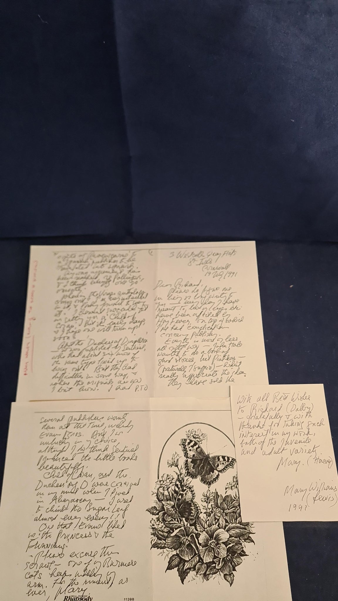 The story of how three orphans found a mother.  Correspondence between Richard Dalby and Mary Harvey.  A little small personal note to Richard Dalby and Signed and dated by Mary Harvey.