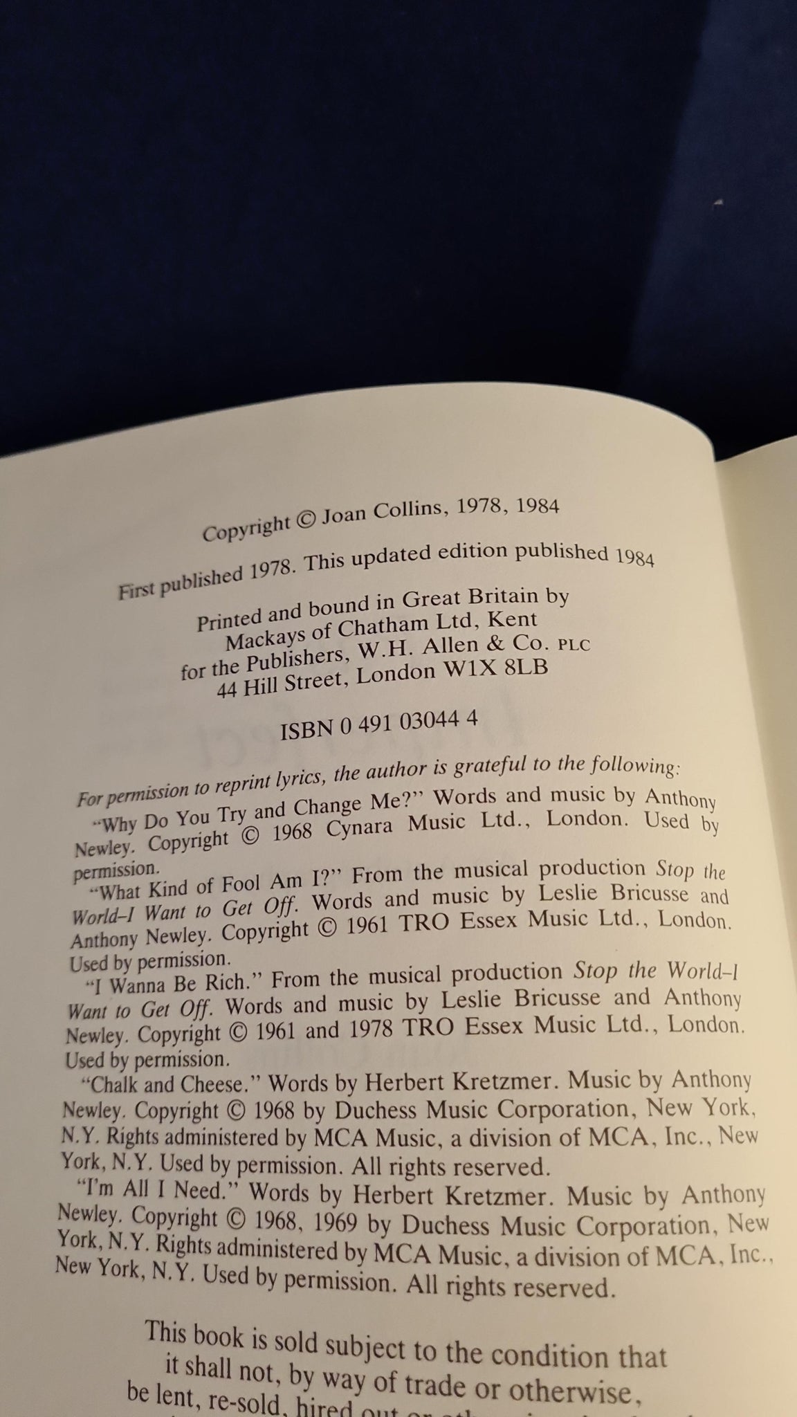 Joan Collins - Past Imperfect, W H Allen, 1984, An Autobiography