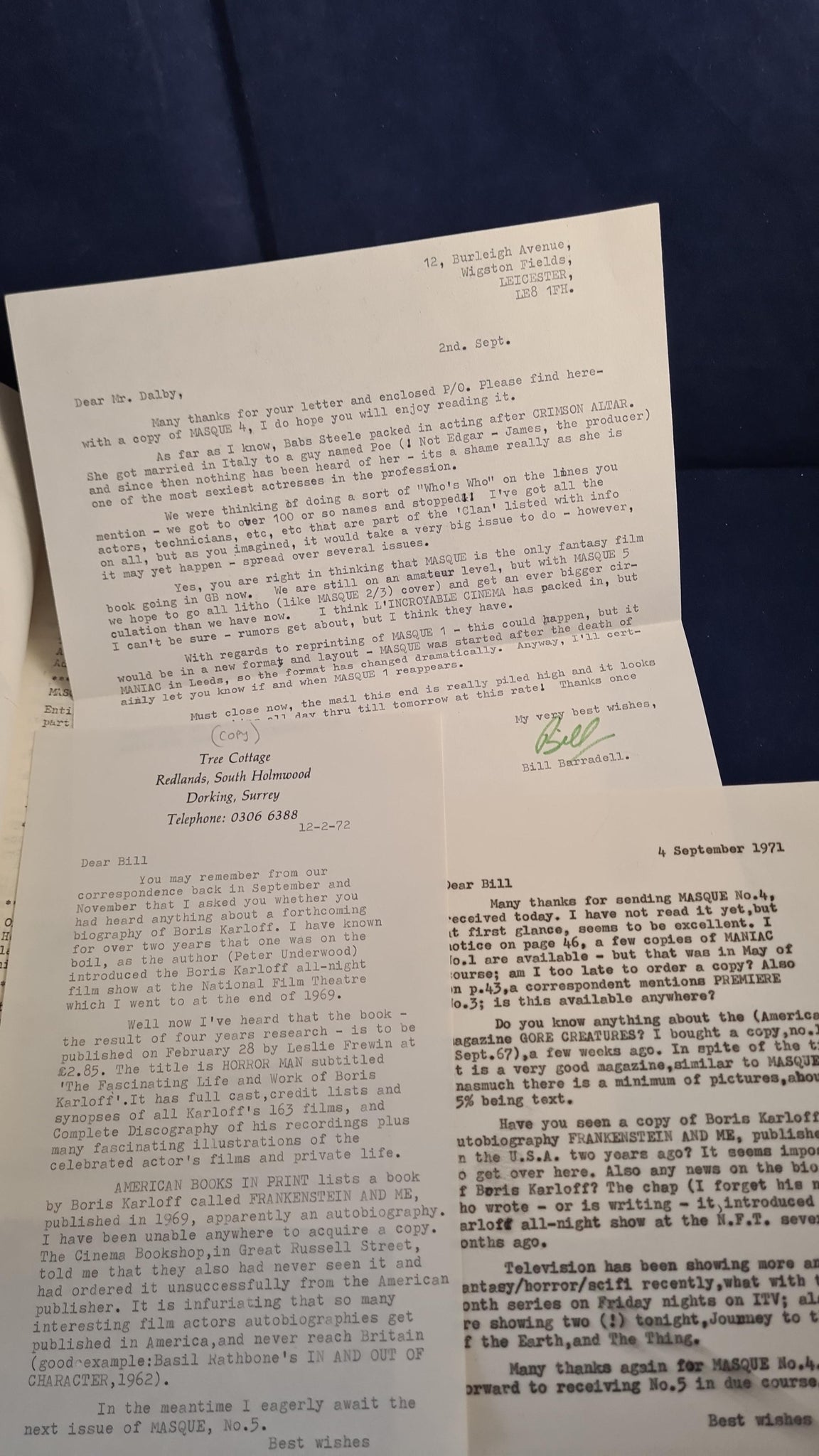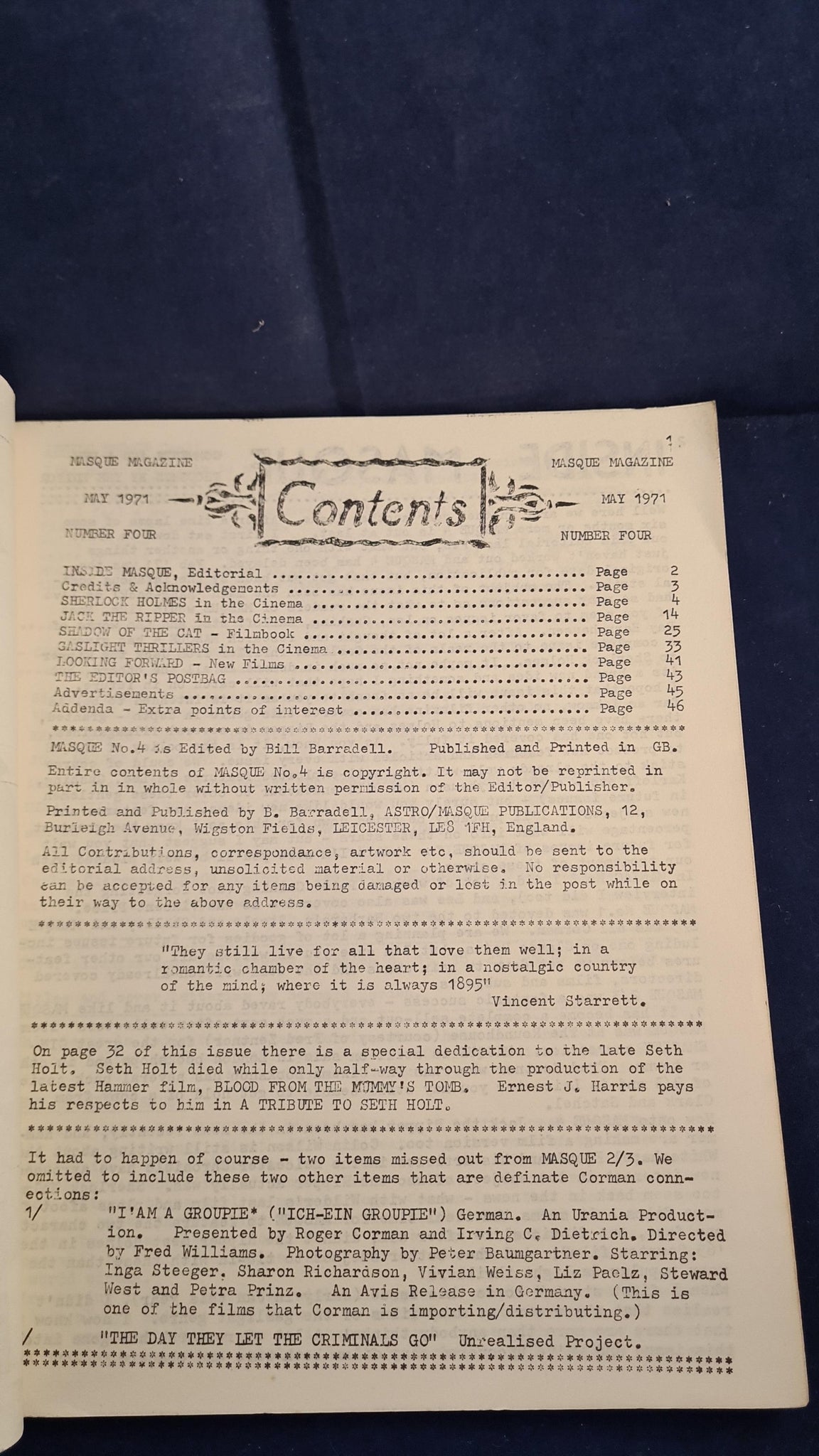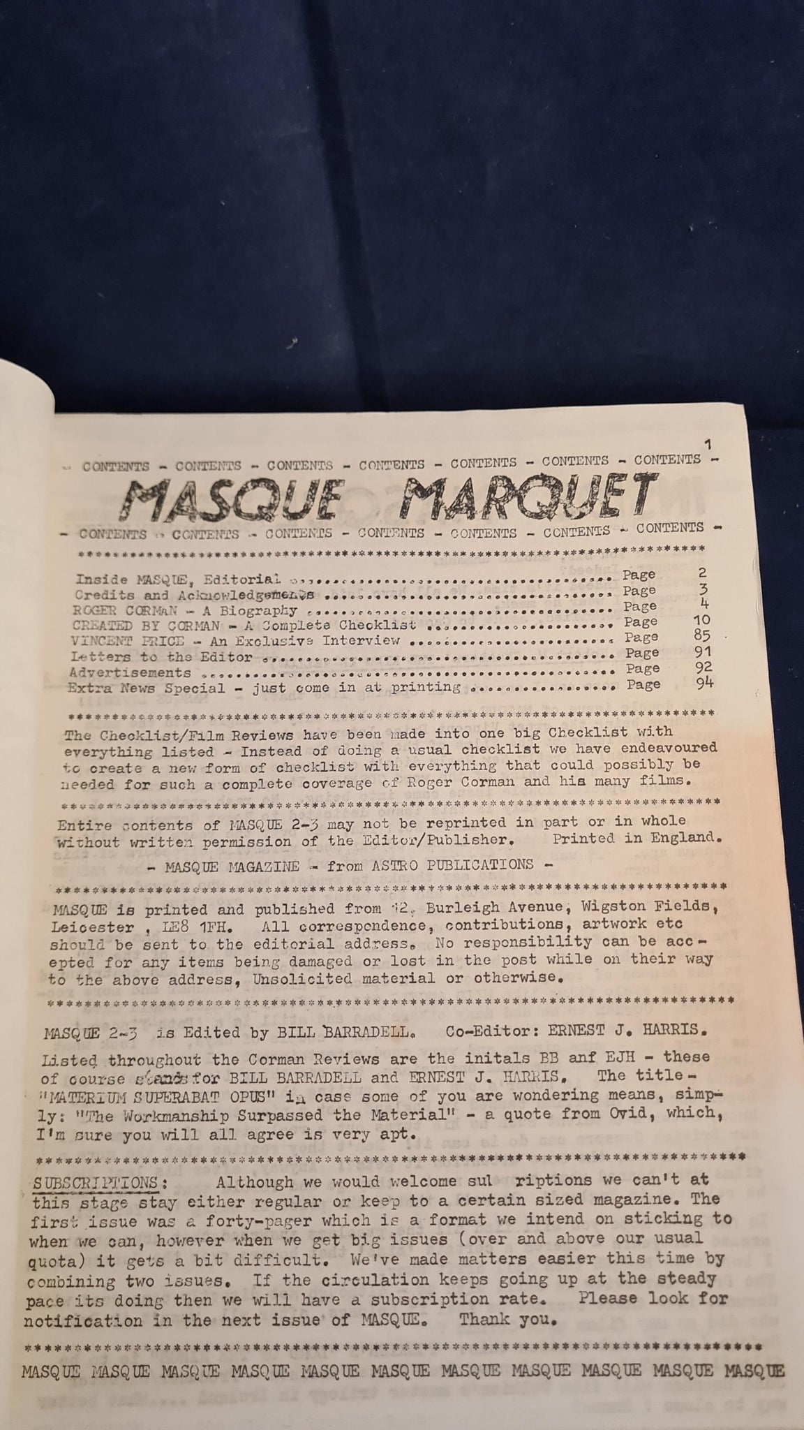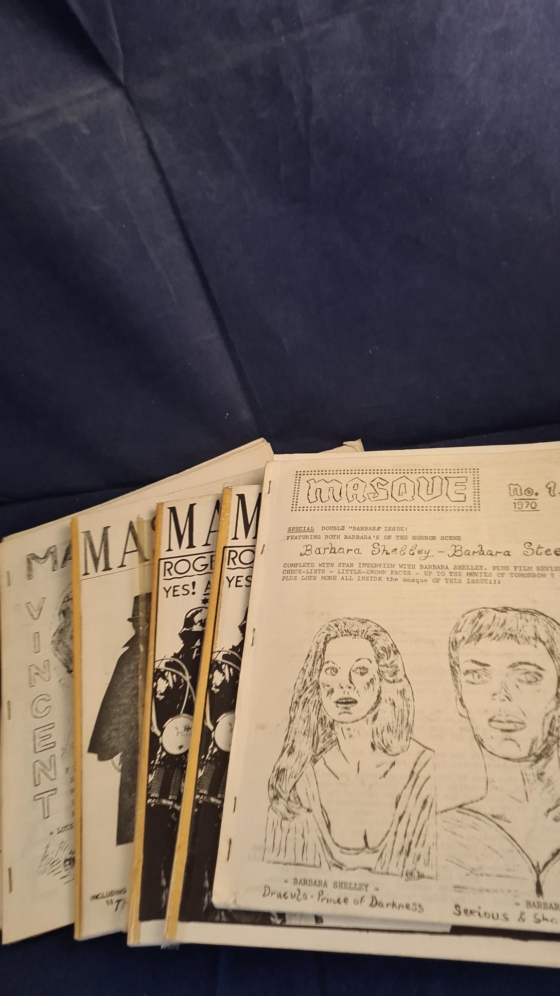 Genus Magazine, Number 2, A quarterly publication.  Two copies of Masque 2 & 3, with taped spines.  Movie Matinee, Volume 1, Number 5 1965.  Masque number 1 has correspondence between Richard Dalby and signed by Bill Barradell.