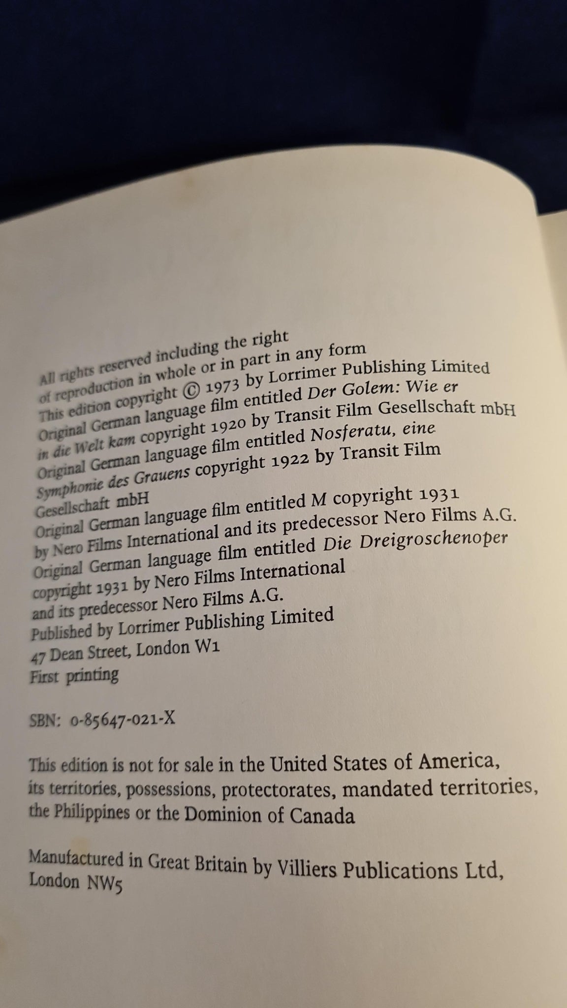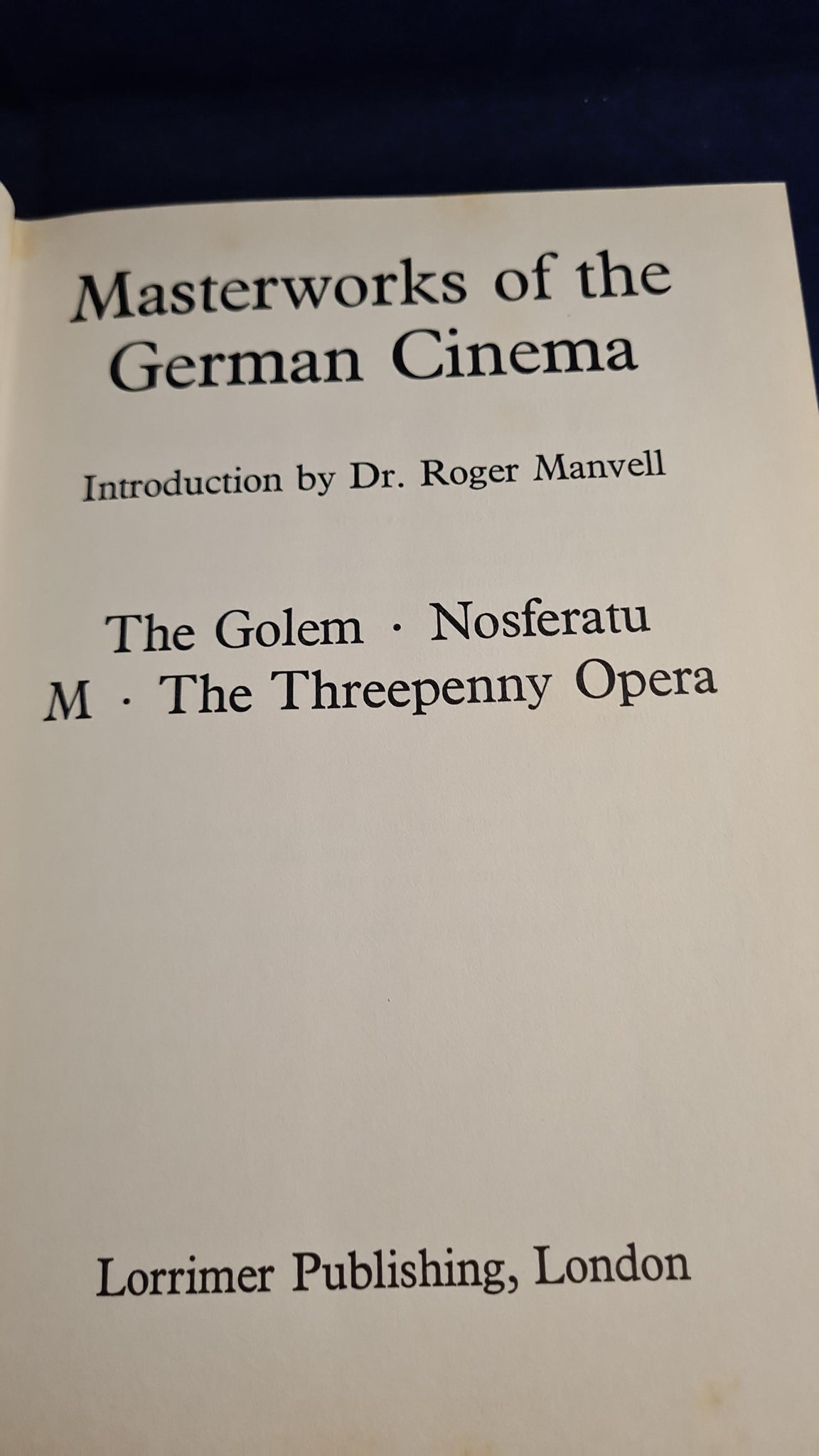 Introduction by Dr. Roger Manvell - Masterworks of the German Cinema, Lorrimer Publishing, 1973