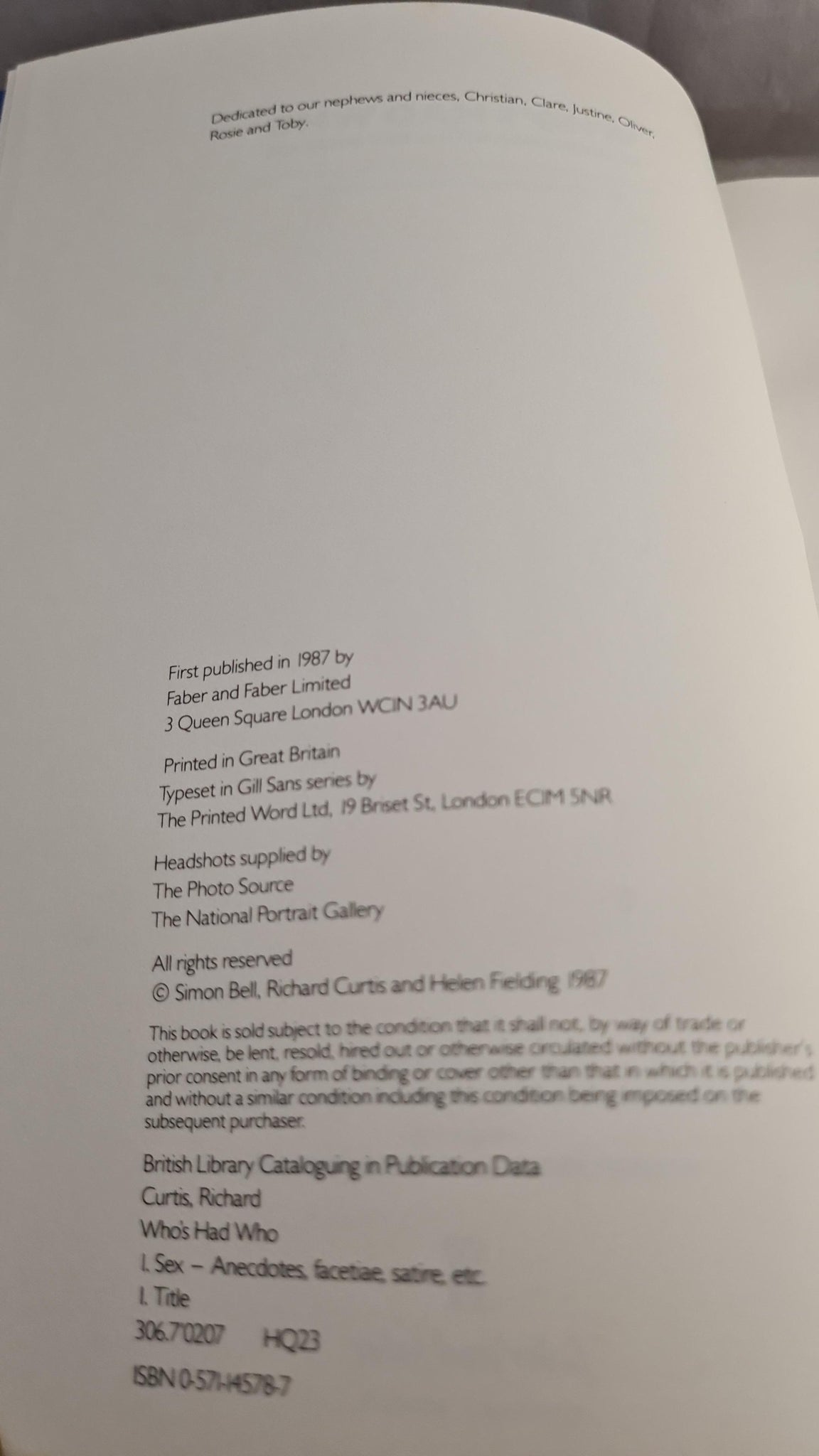 Simon Bell, Richard Curtis & Helen Fielding - Who's Had Who, Faber & Faber, 1987, First Edition