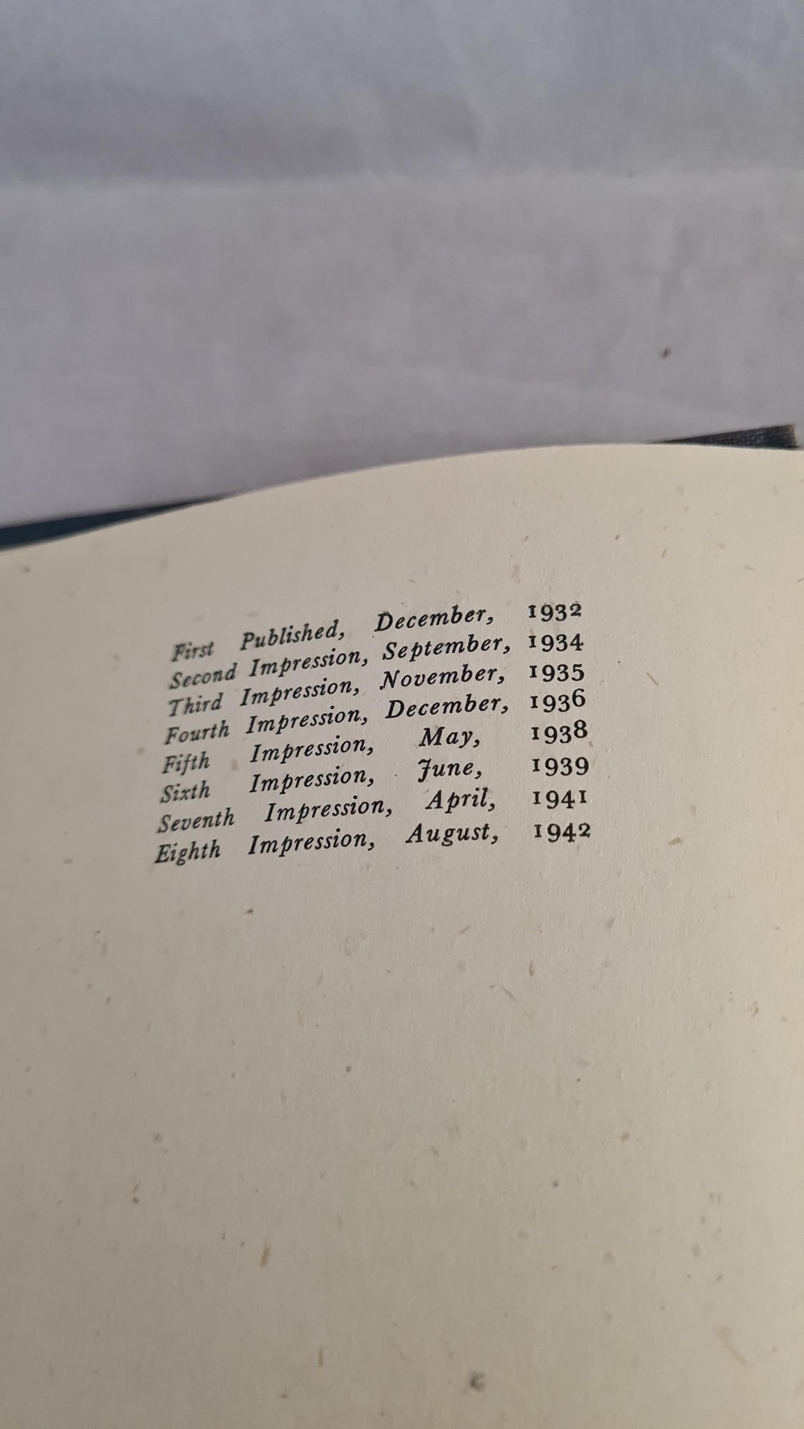 Green cloth in fair condition. No dust jacket. Faded spine and bumped ends. Faded and stains to cloth. Corners bumped. Stains to endpapers. Foxing to page edges. Text firm and clean. Couple of folded corners through book. Eighth Impression.