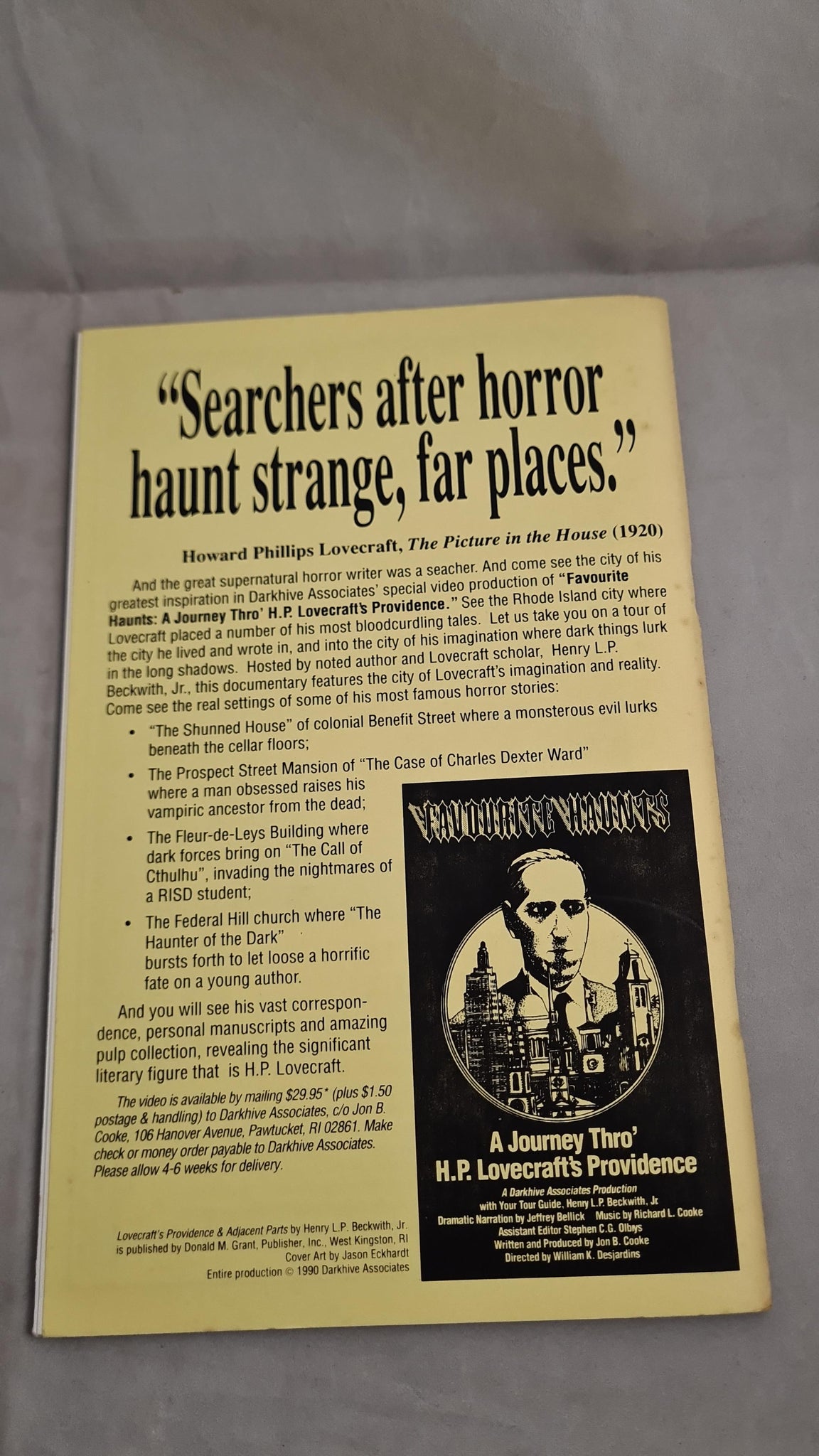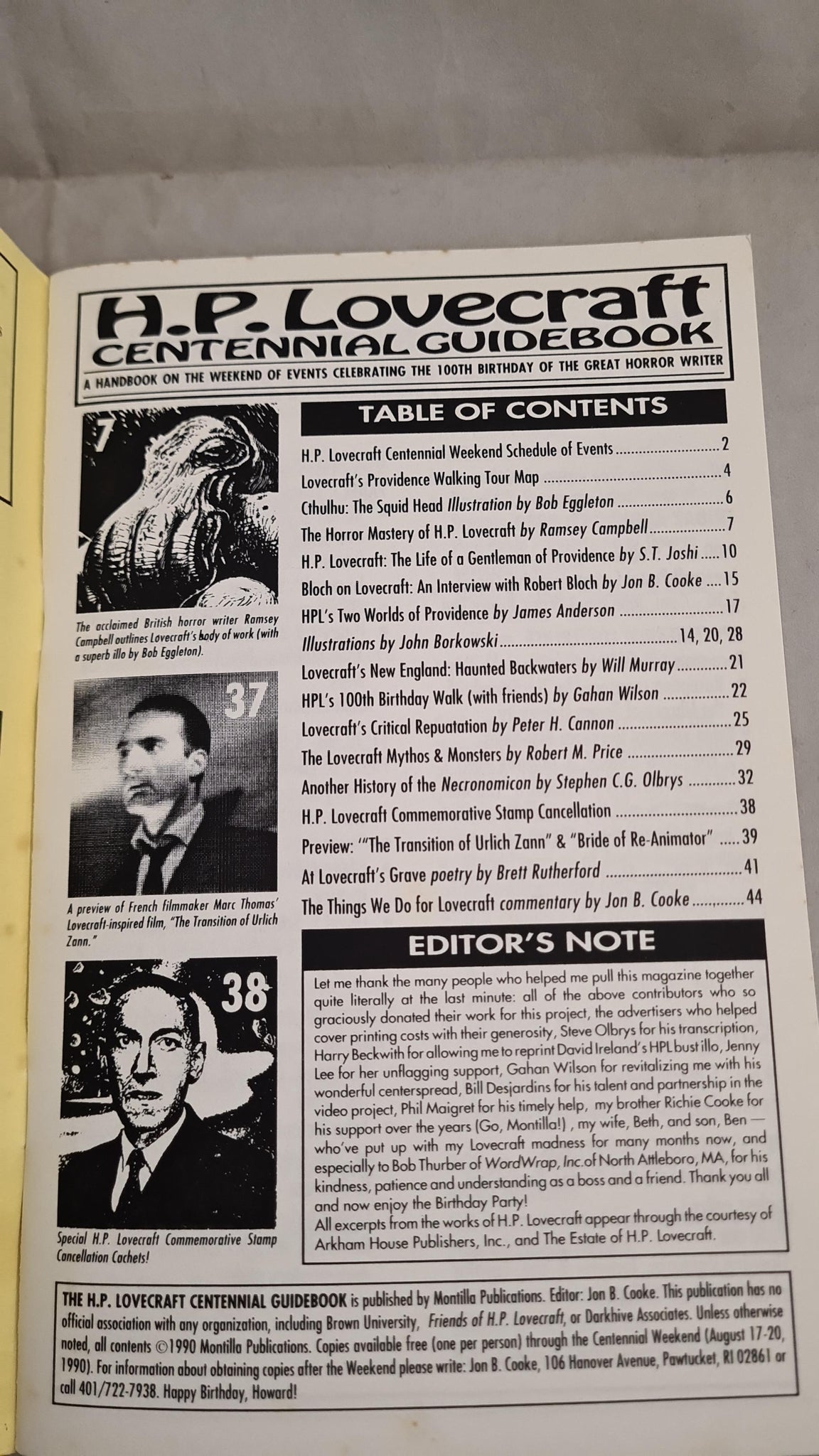 A Handbook on the weekend of events celebrating the 100th Birthday of the Great Horror Writer. Friday, August 17, 1990.