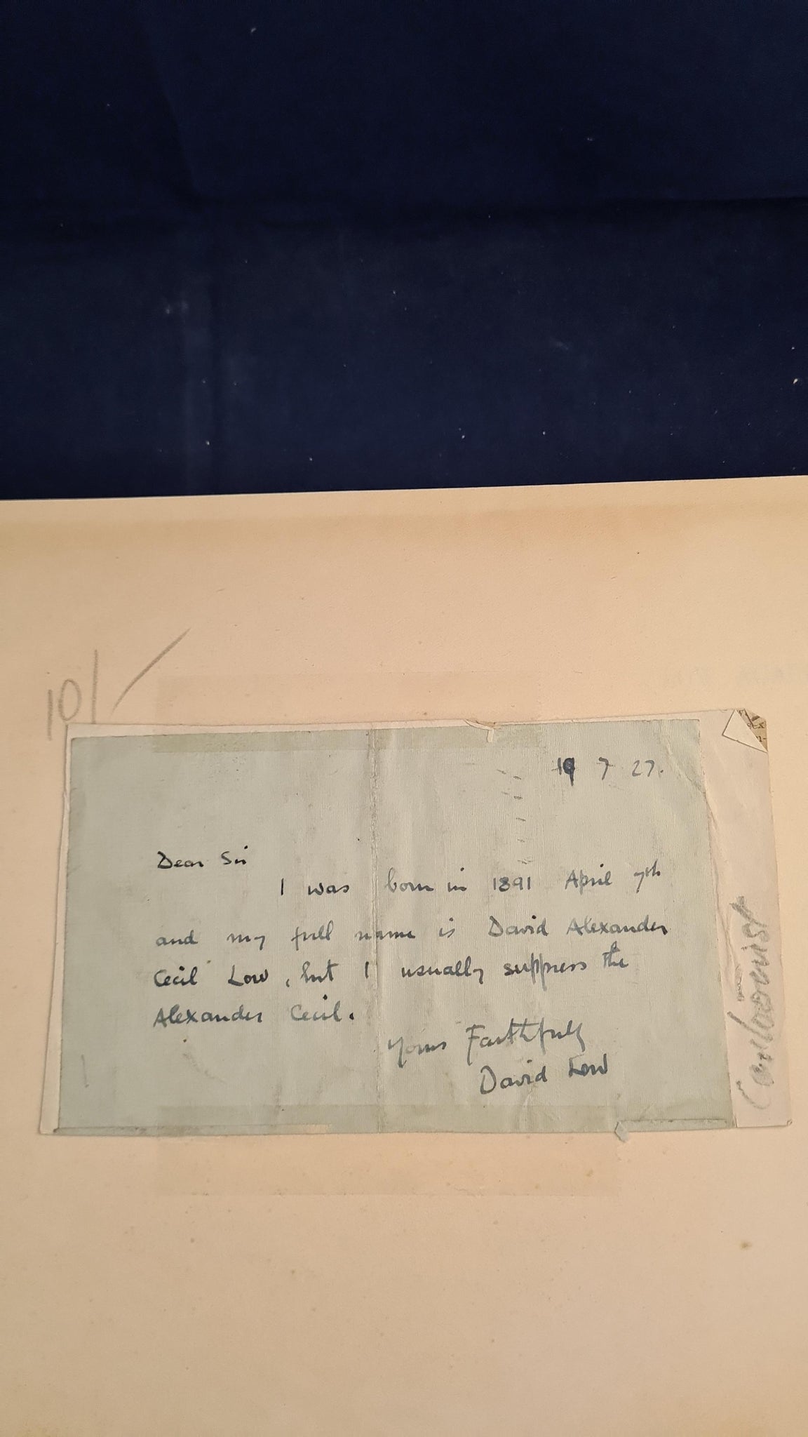 A Signed letter by David Low taped to endpaper.