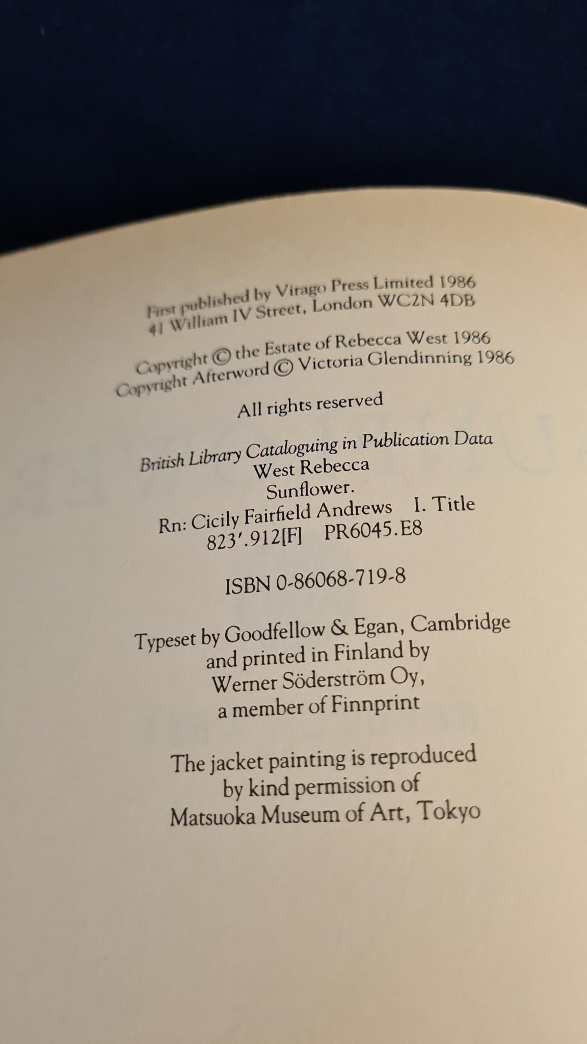 The narrative begins with Sunflower's growing dissatisfaction with her ten-year relationship with Lord Essington, whose obsession with intellectual pursuits leaves her craving deeper emotional connection. The plot explores the dissolution of this affair and the beginning of her new romance with Francis Pitt, though the novel ends before their relationship is fully explored.  Autobiographical elements: West wrote Sunflower during her own psychoanalysis, drawing heavily from her turbulent, decade-long affair with H.G. Wells and her later relationship with Lord Beaverbrook.  Publication history: West suppressed the novel during her lifetime, and it was eventually published posthumously in 1986.