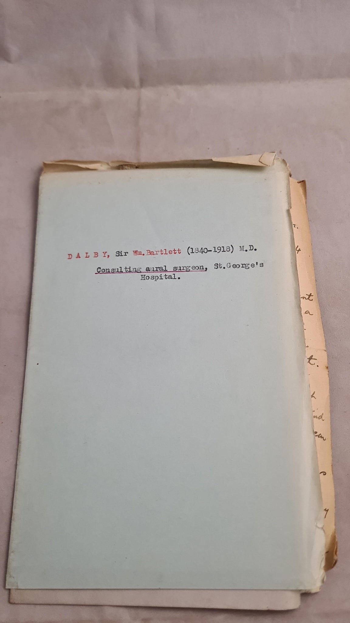 Historical Significance: Dalby was a trailblazer in otology, serving as the first-ever Aural Surgeon at St. George’s Hospital and the first president of the Otological Society of the United Kingdom. Content Scope: The book covers clinical observations and treatments for various ear conditions of the late 19th century, including issues with the tympanic membrane (eardrum), the Eustachian tube, and external injuries. Fourth edition. Three letters signed by WM Dalby.