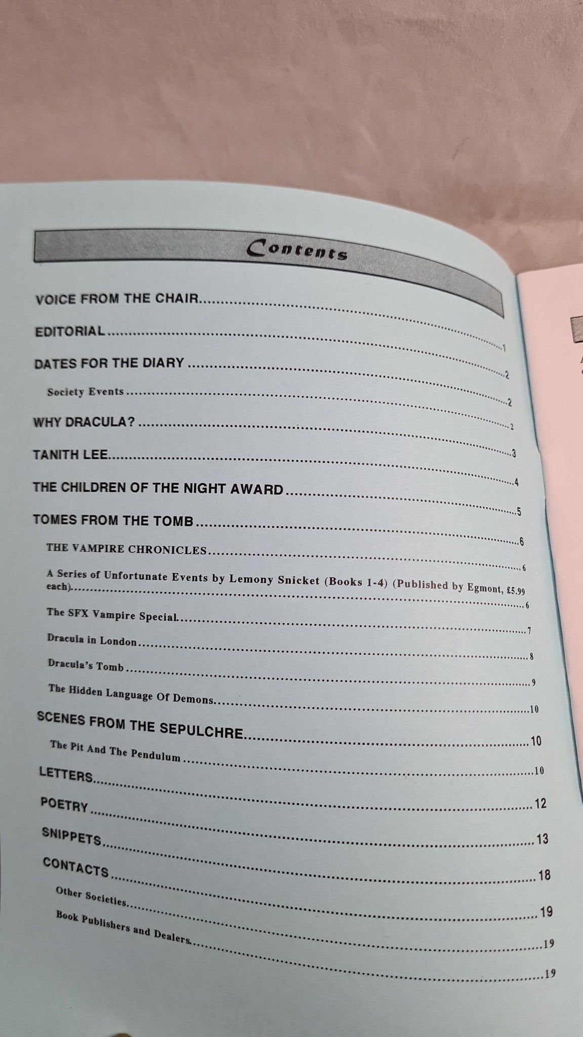 Society Updates: It features reports on Society events and meetings, as well as announcements for future gatherings like the annual Bram Stoker Birthday Dinner. Reviews and Articles: Members contribute reviews of books, films, and theatre productions. Feature articles explore various aspects of the Gothic and supernatural genres. Photography: Issues often include photographs taken by members during Society trips and events. Submissions: The publication is specifically for Society members; it does not accept external submissions or publish original fiction.