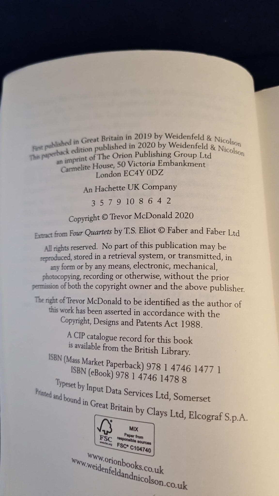 Trevor McDonald - An Improbable Life, Weidenfeld & Nicolson, 2020, Paperbacks
