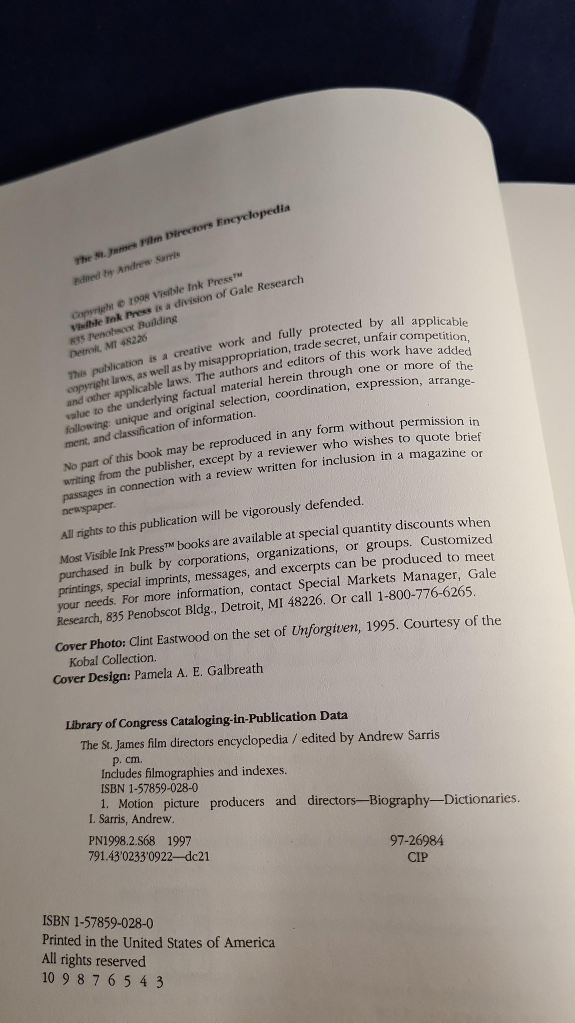 Editor Andrew Sarris - St. James Film Directors Encyclopedia, Visible Ink Press, 1998