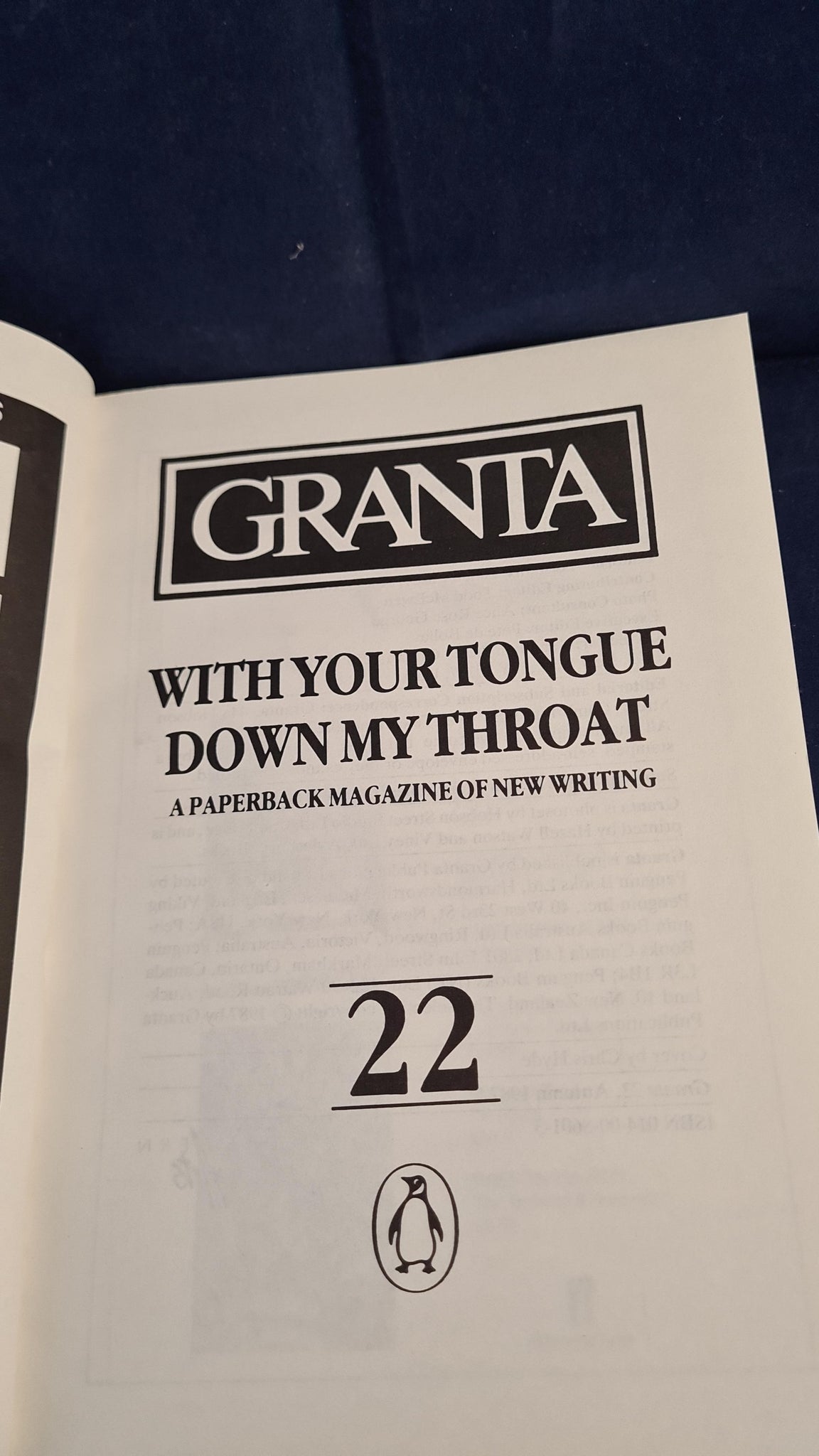 Editor Bill Buford - Hanif Kureishi - With Your Tongue Down My Throat, Autumn 1987, Granta 22 Publications
