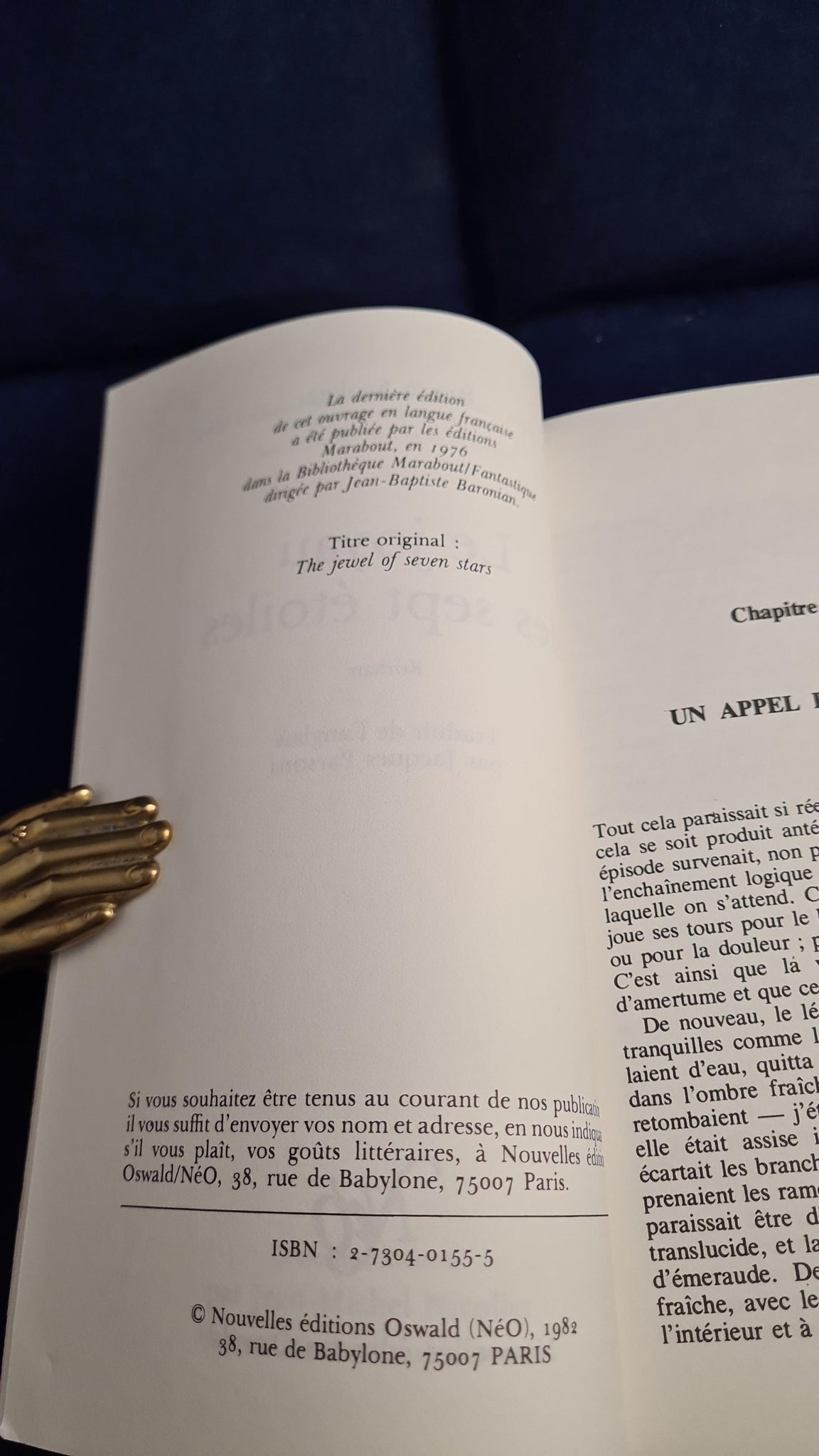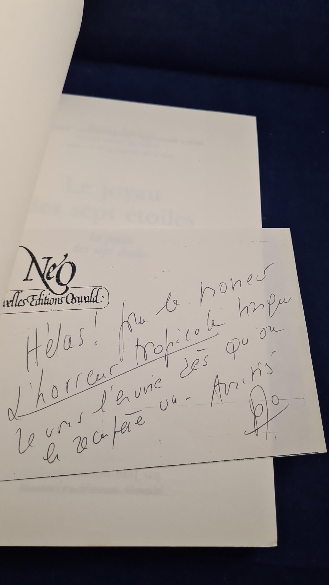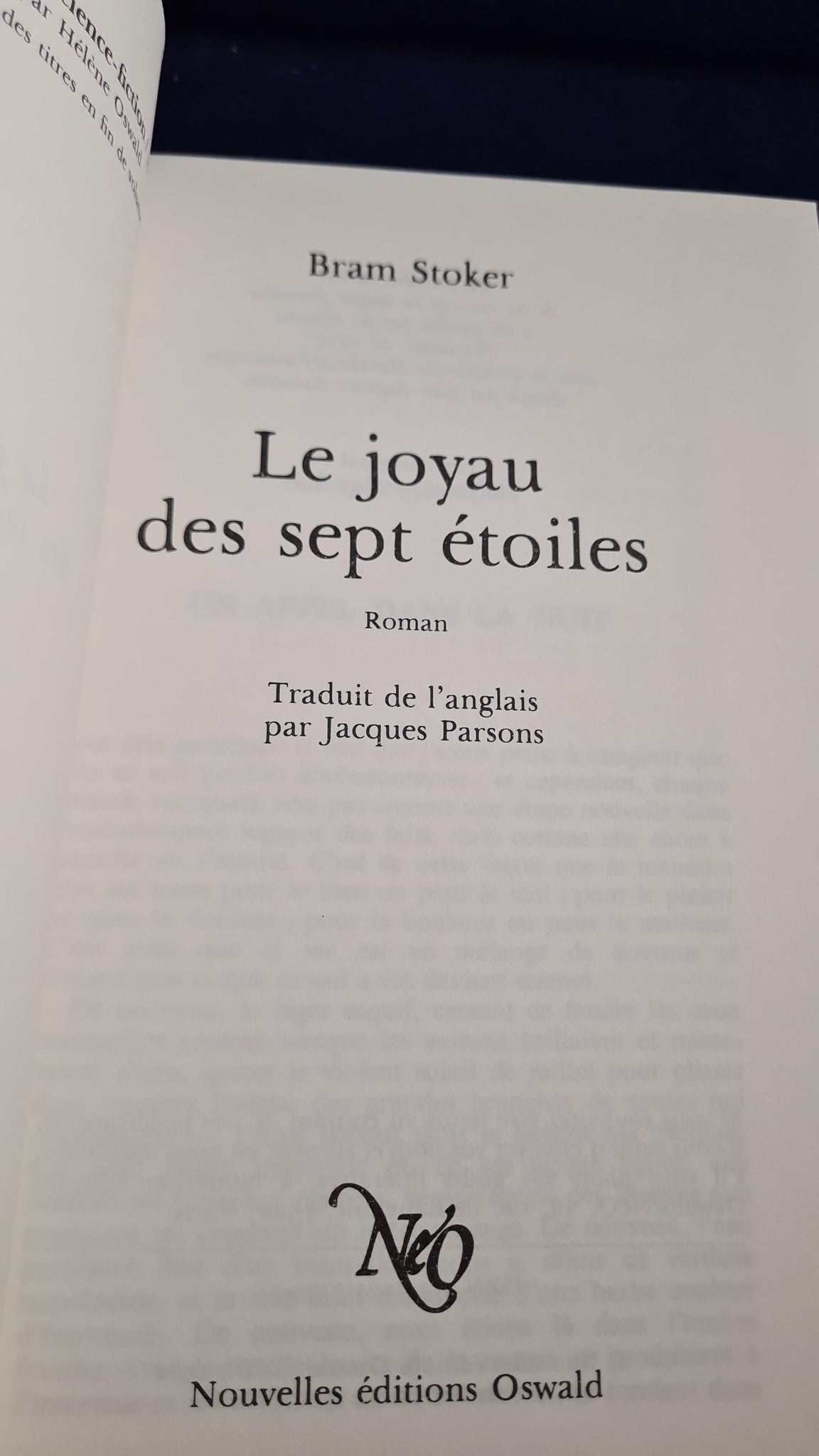 French edition translated by Jacques Parsons (The Jewel of the Seven Stars). Nouvelles editions headed note paper included. Written in French.