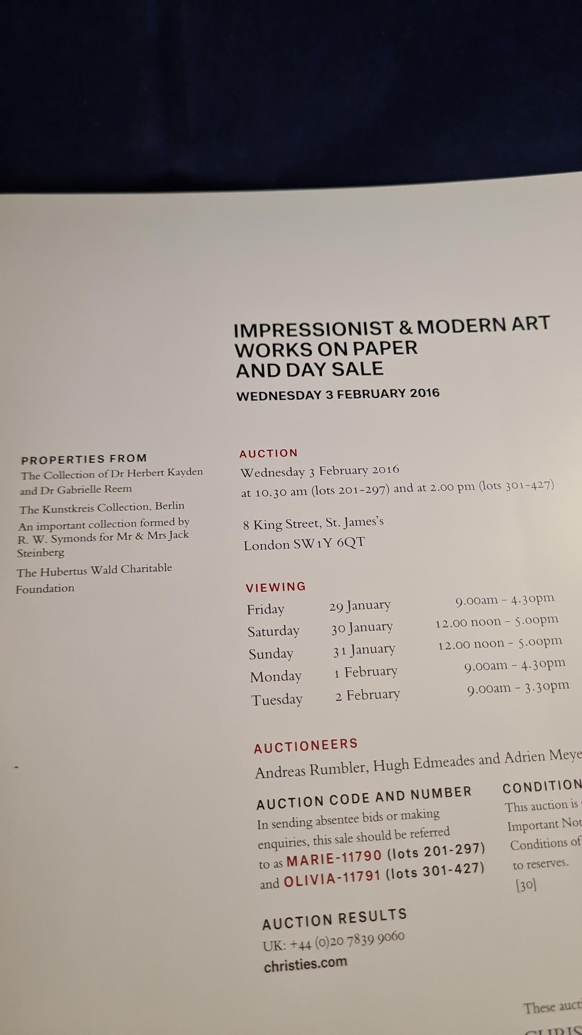 Christie's Auctions 3 February 2016, Impressionist & Modern Art Works on Paper, King Street