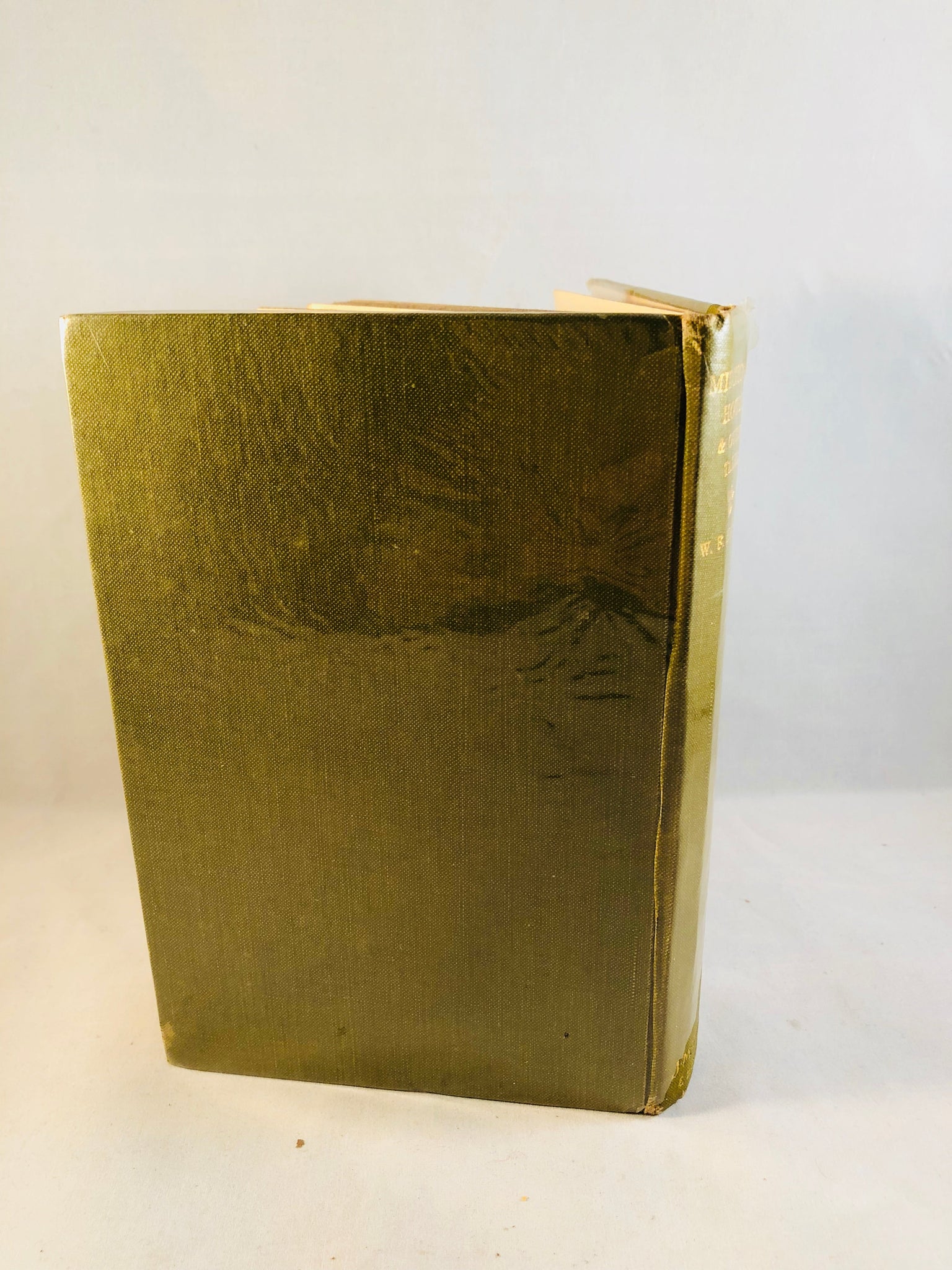 Hardback, green cloth, gold lettering and illustration, white end papers, 243 pages. Protected by plastic cover.