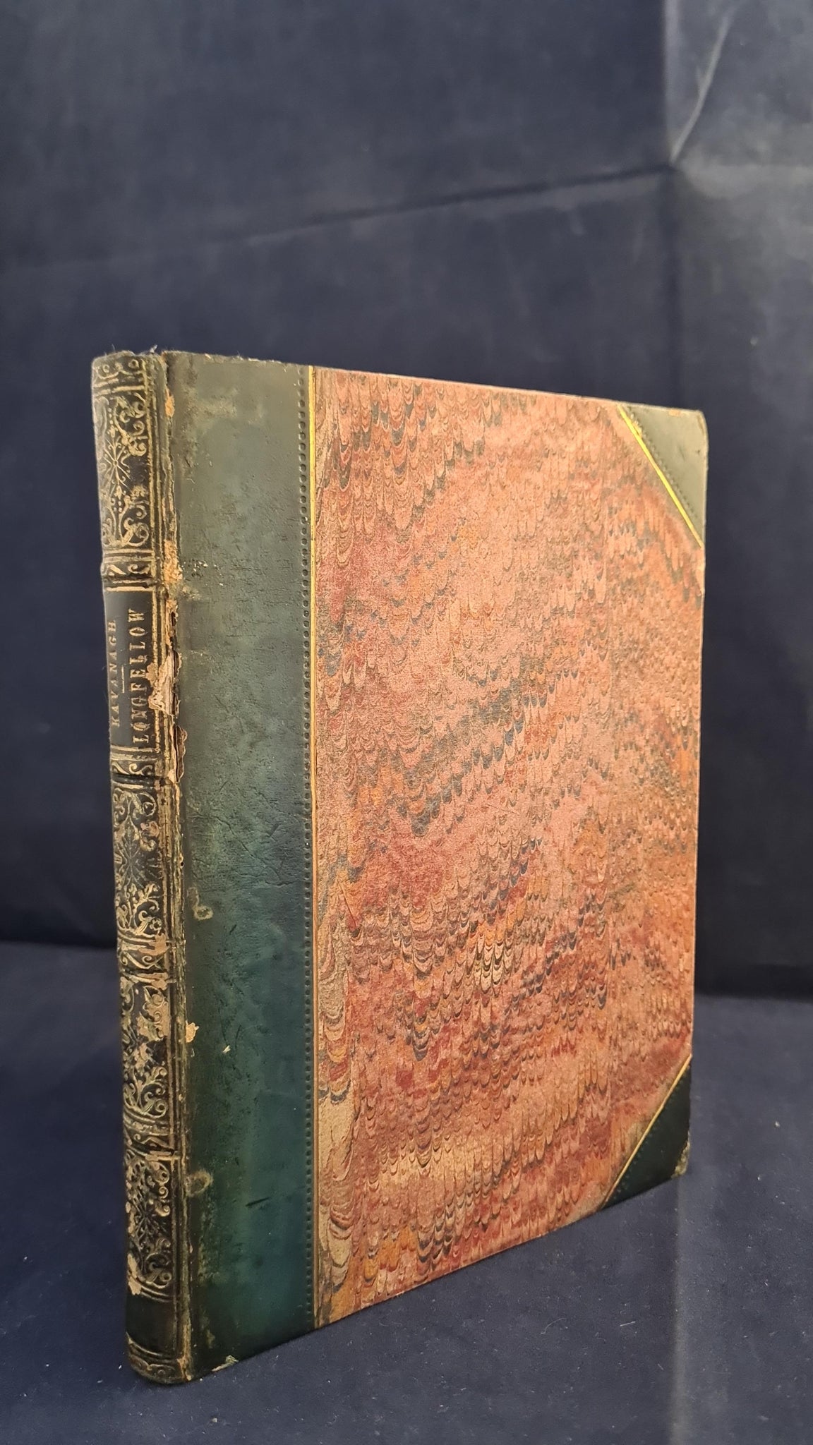 Patterned boards in fair condition. Patterned gilt to spine. Rubbed hinges, worn to front. Bumped spine ends. Corners bumped. Patterned endpapers and page edges. Faded boards. Foxing to endpapers and title pages. Good reading copy.