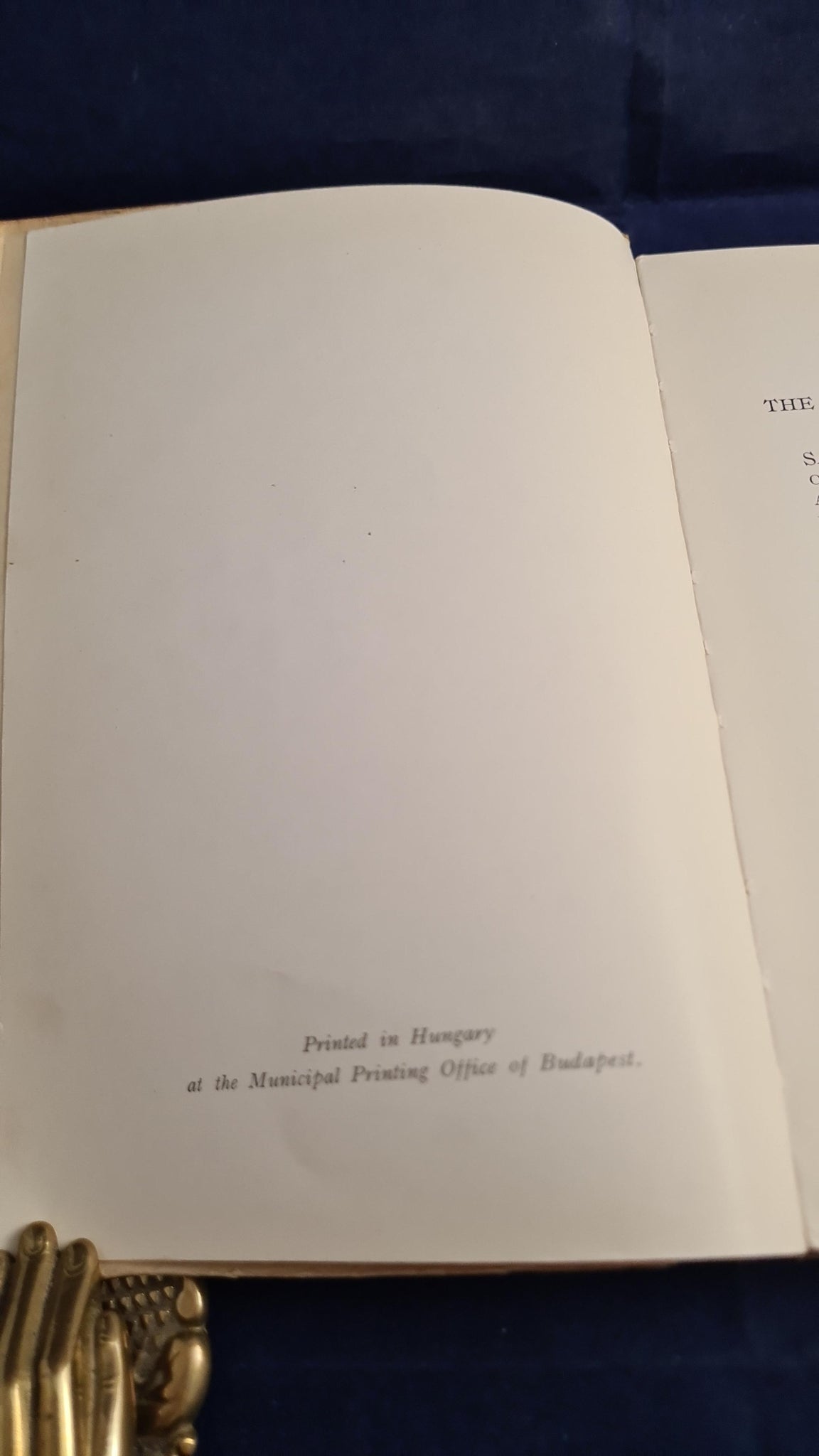 Softcover in poor condition. 'Presented by the Municipal Information Office, Budapest' ink stamp on front cover. Darkened and stains to covers. Bumped and torn spine ends. Corners bumped. Foxing to endpapers, inside front cover and title page. Foxing to page edges. White leaves. Text firm and clean.