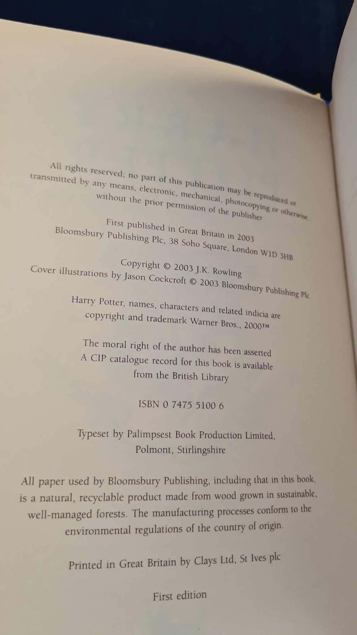 J.K. Rowling - Harry Potter and the Order of the Phoenix, Bloomsbury, 2003, First Edition