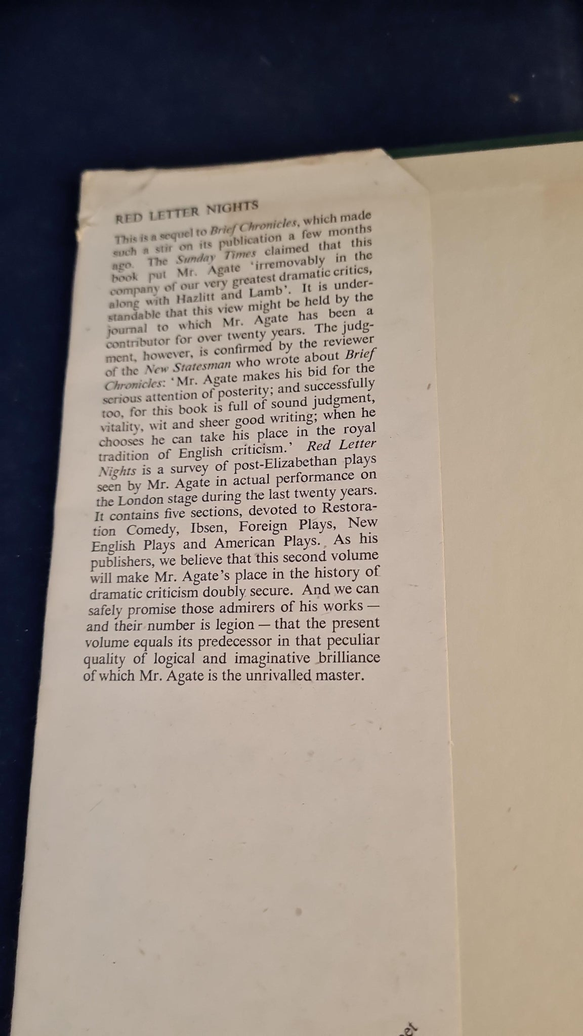 James Agate - Red Letter Nights, Jonathan Cape, 1944, First Edition