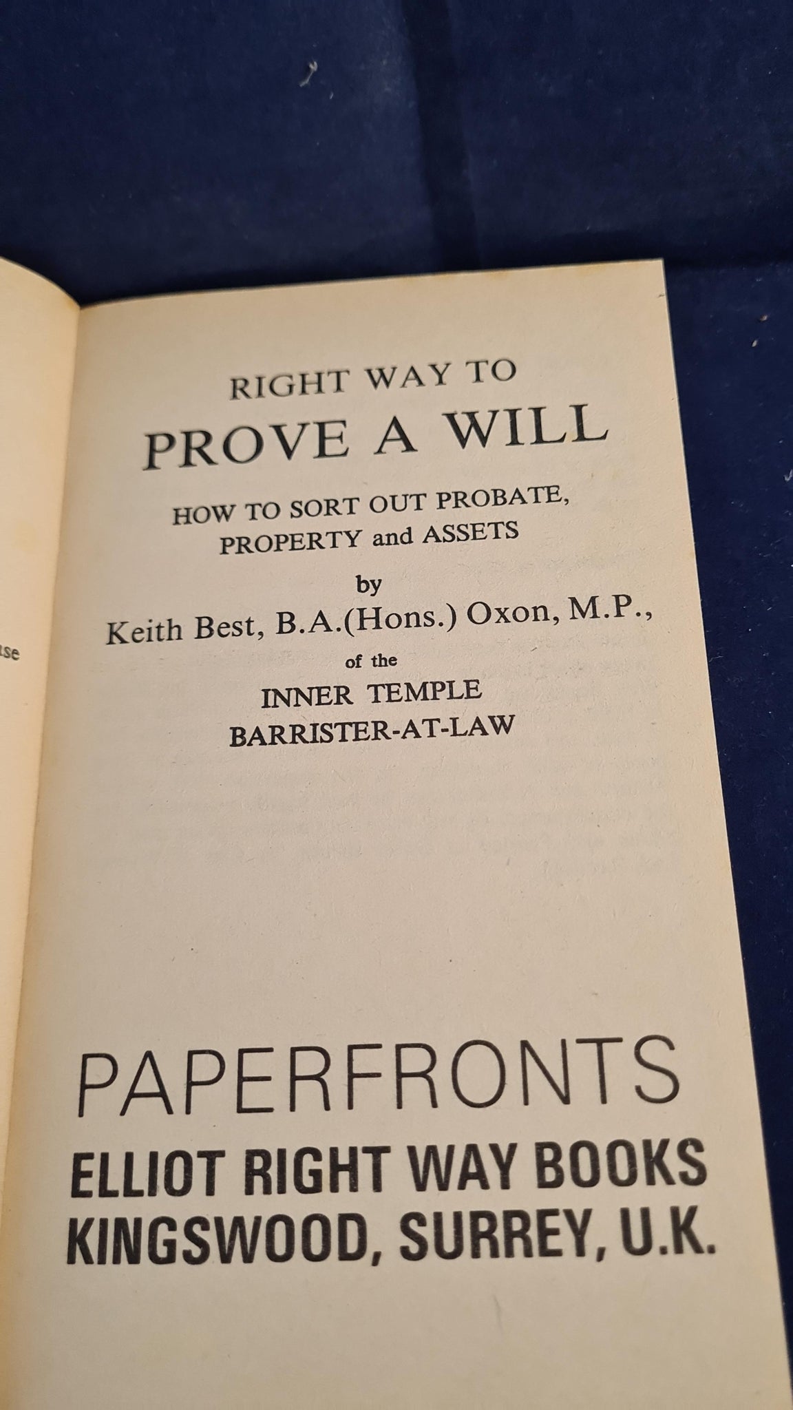 Keith Best - The Right Way To Prove a Will, Paperfronts, 1981, Paperbacks