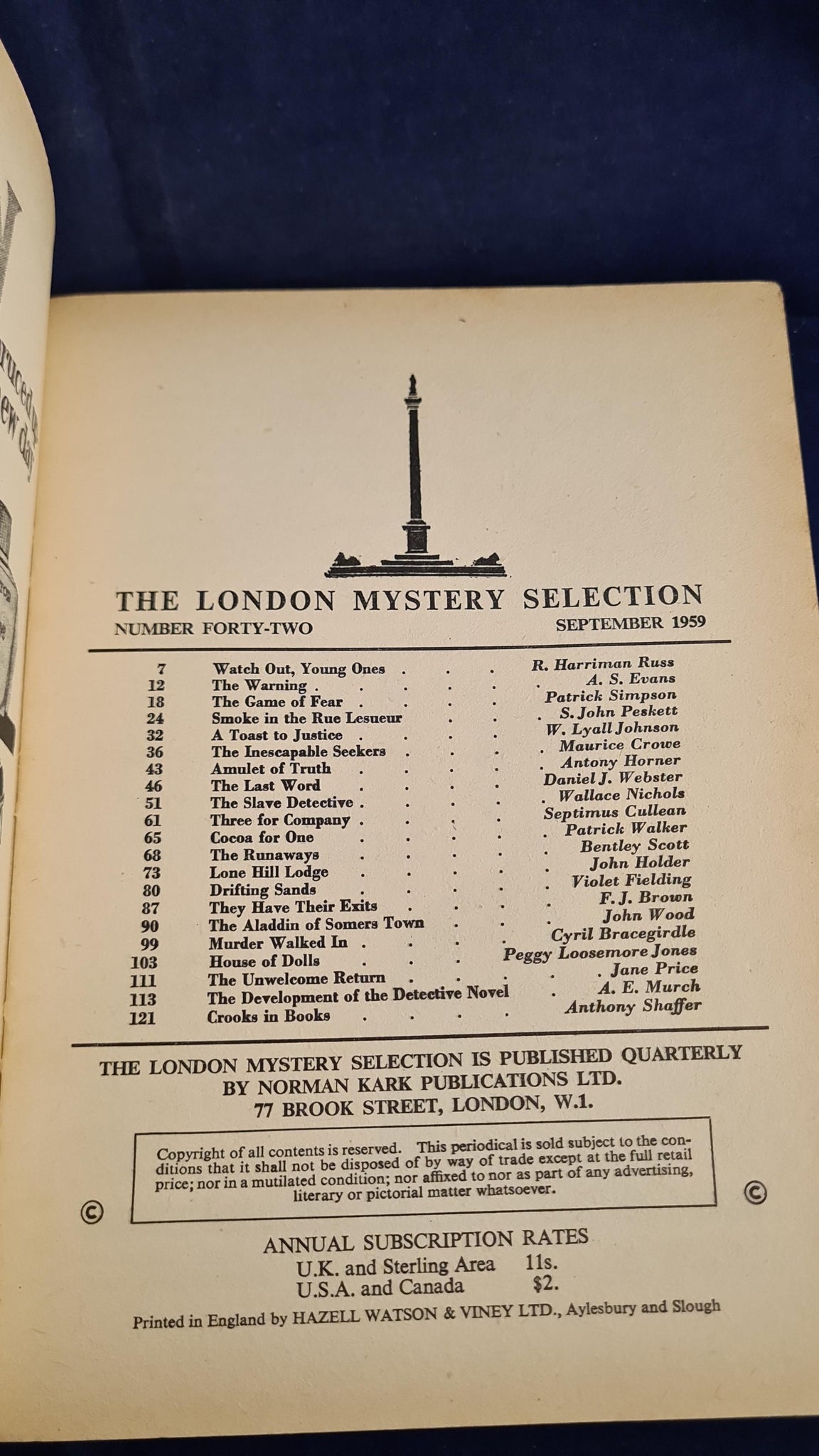 London Mystery Selection Magazine, Number 42 September 1959, Paperbacks