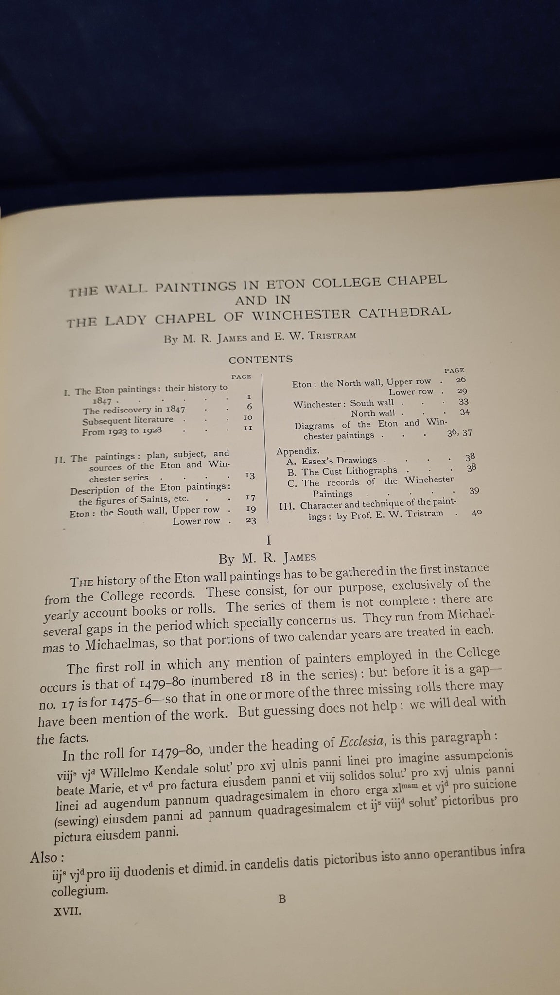 M R James & E W Tristram - Wall Paintings in Eton College Chapel & in the Lady Chapel of Winchester Cathedral, Oxford University Press,1929