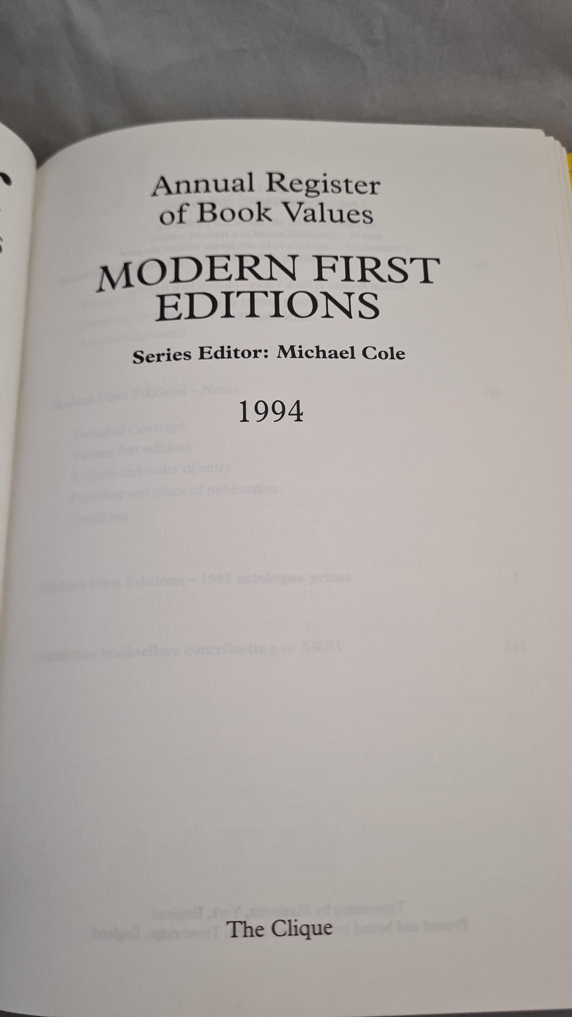 Series Editor Michael Cole - Annual Register of Book Values, Modern First Editions 1994, The Clique