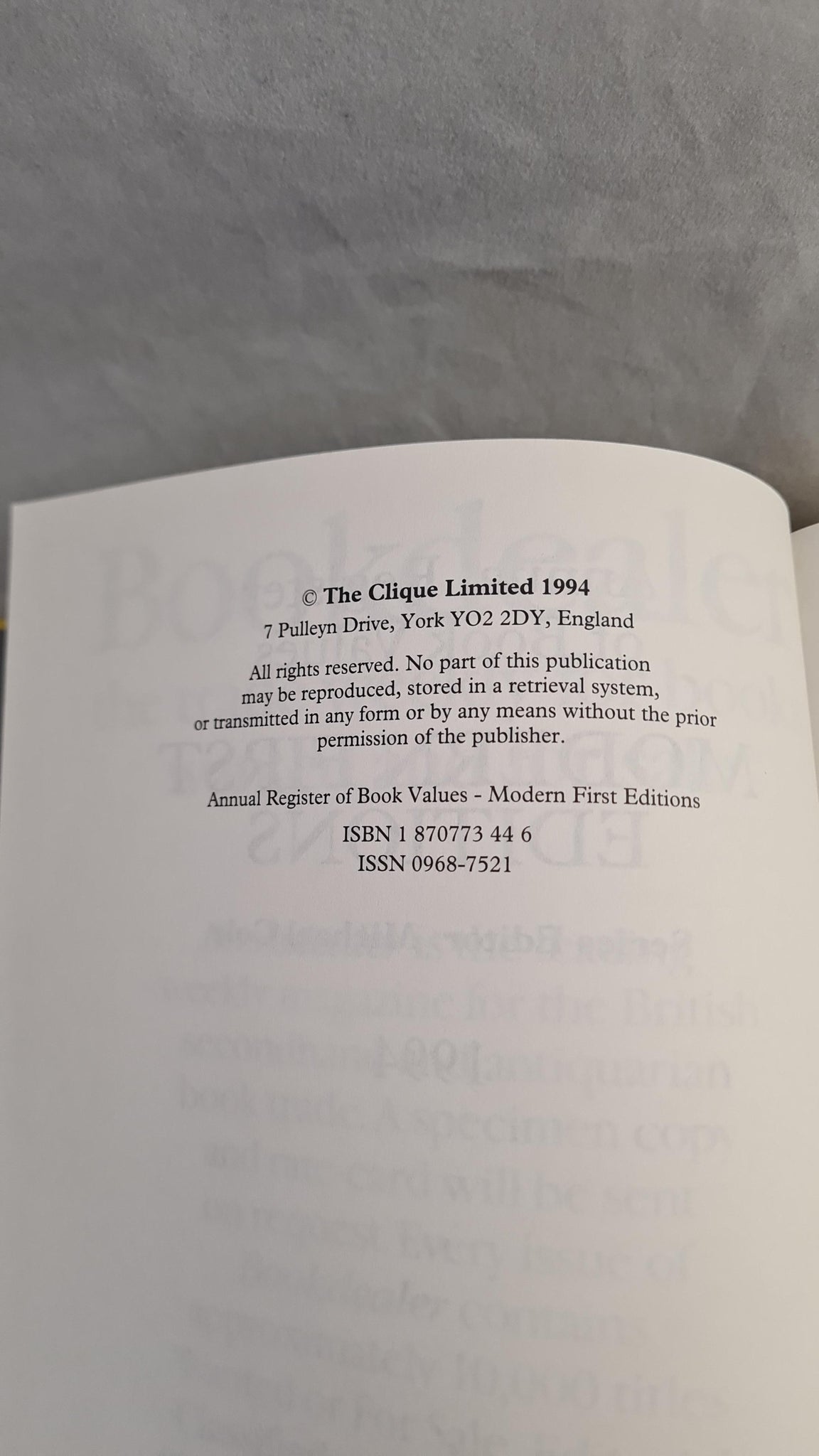 Michael Cole - Annual Register of Book Values, Modern First Editions 1994, The Clique