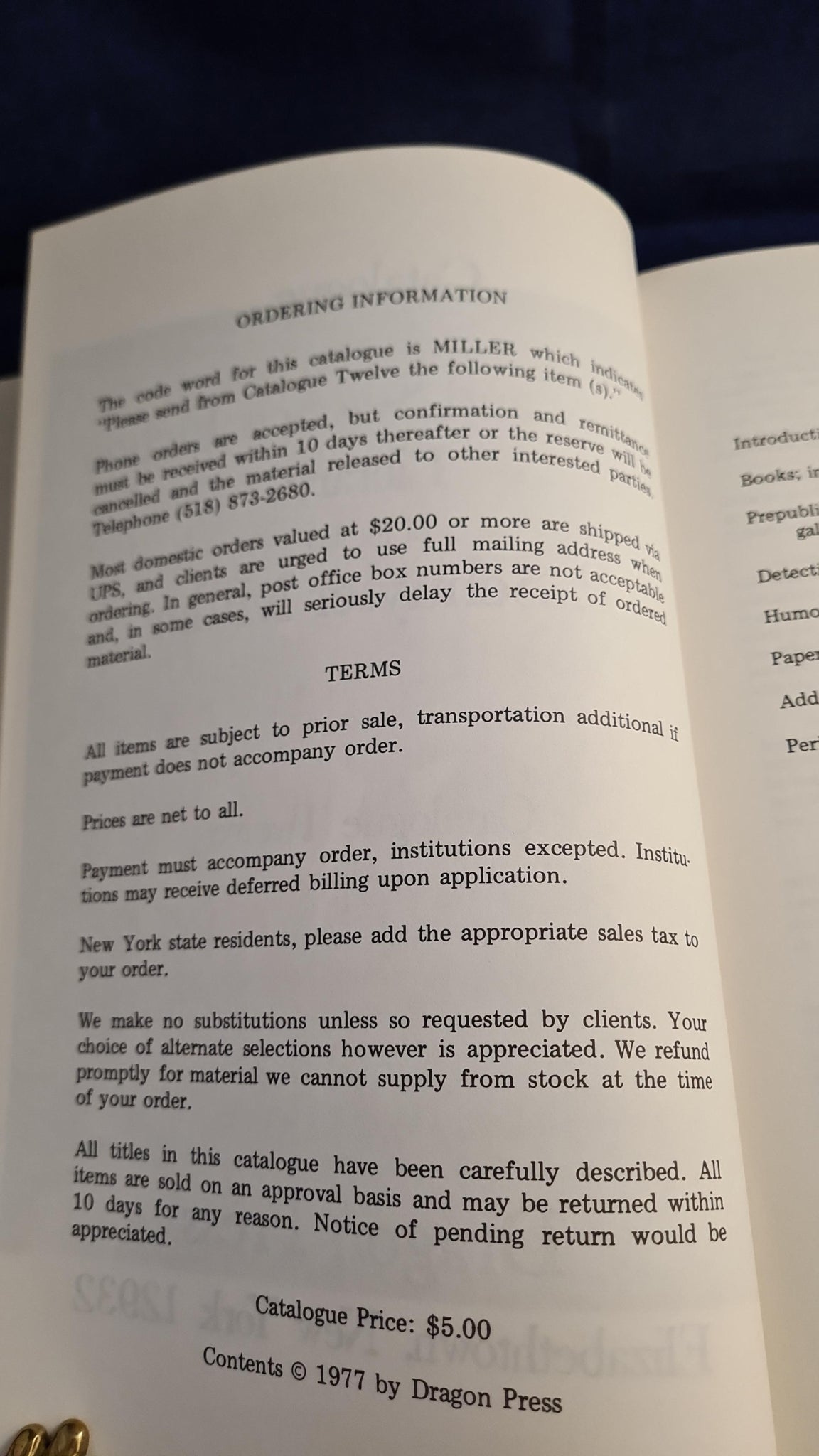 Catalogue of the Fantasy & Science Fiction Library of the late P Schuyler Miller, Dragon Press, 1977, Catalogue Twelve