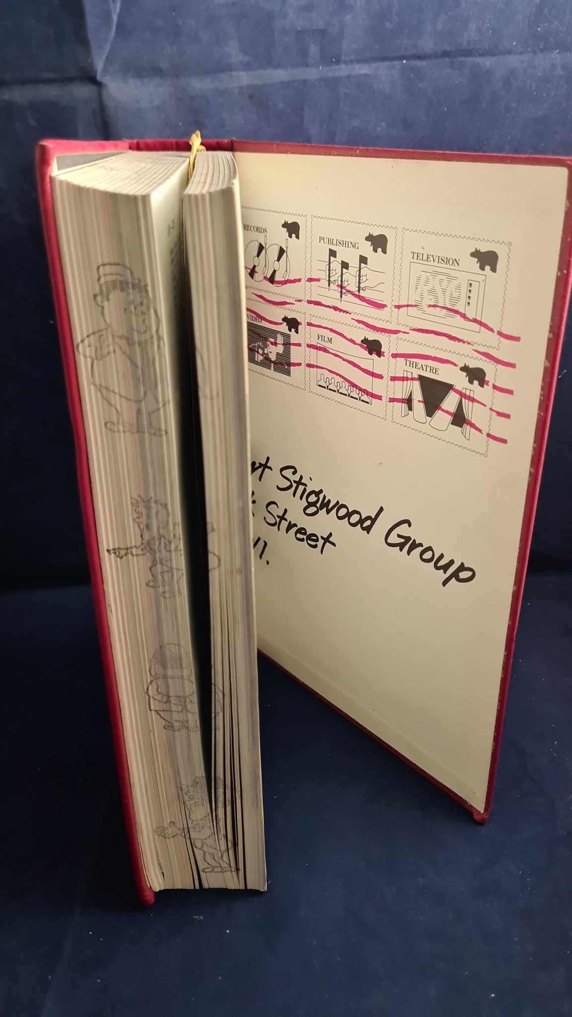Pictorial hardcover in good condition.  Laurel and Hardy cartoons on page edges.  Bumped  spine ends.  Corners bumped.  Text firm and clean.  Darkened page edge corners.