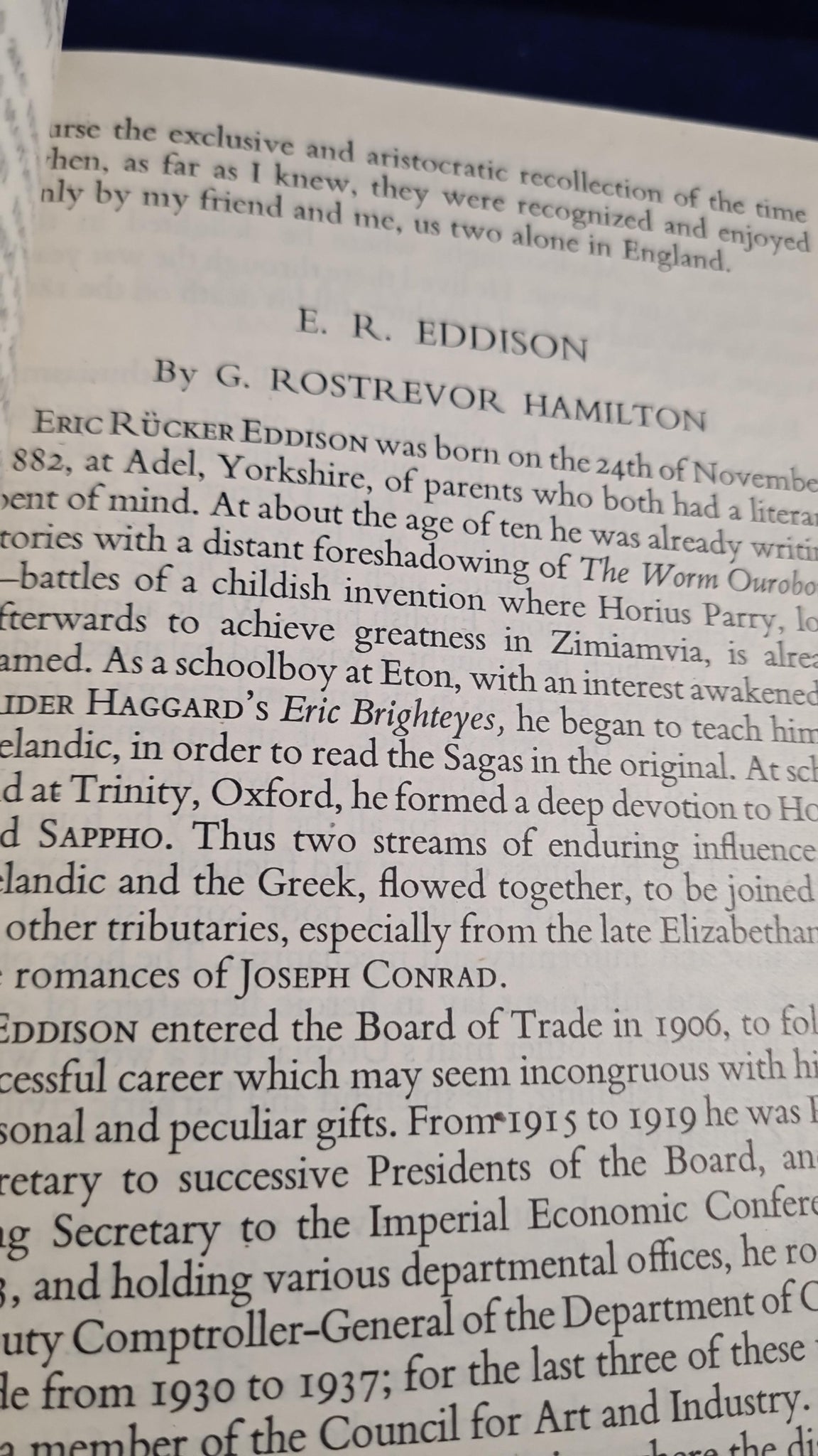 The Ghost Stories of Montague Rhodes James by L J Lloyd on page 237. E R Eddison by G Rostrevor Hamilton on page 53.