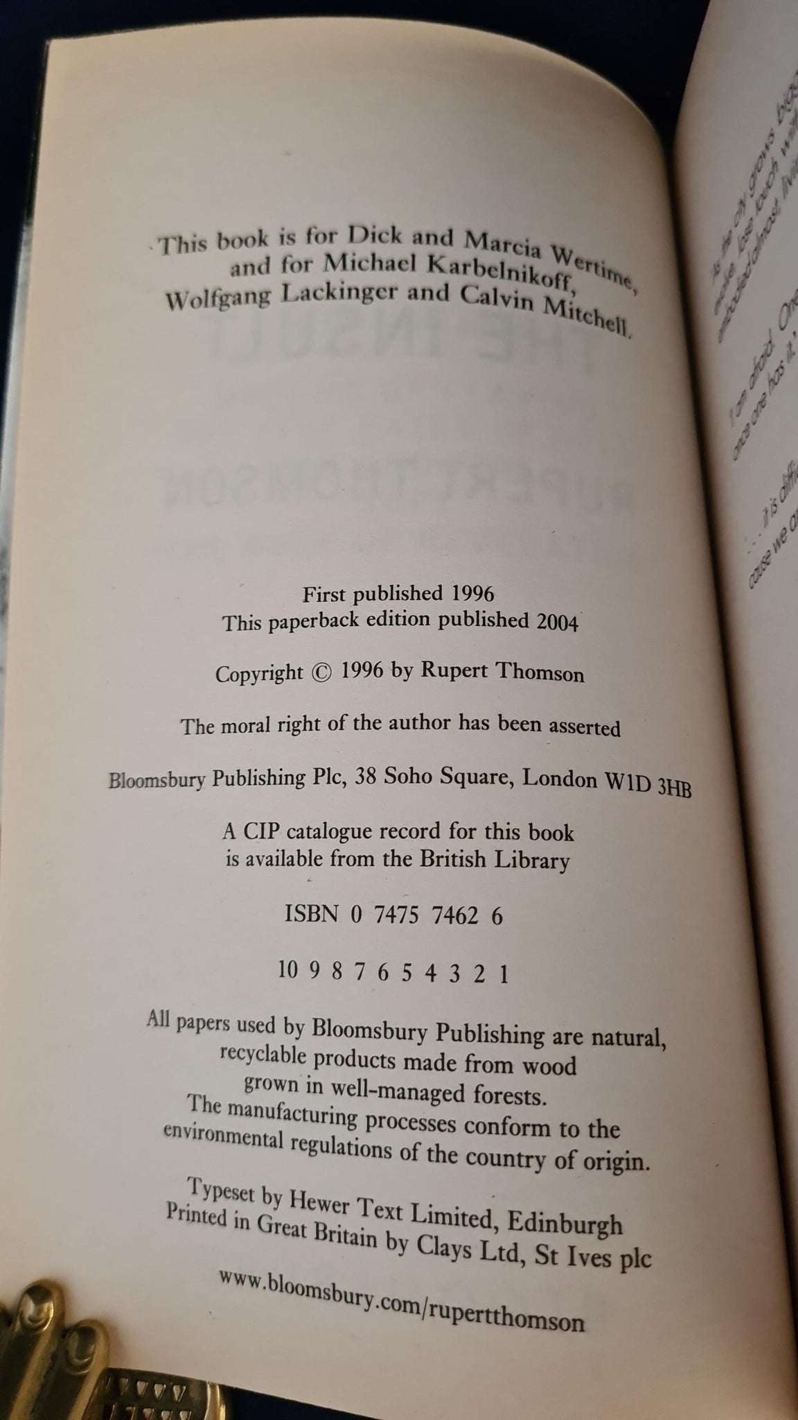 Rupert Thomson - The Insult, Bloomsbury, 2004, Paperbacks