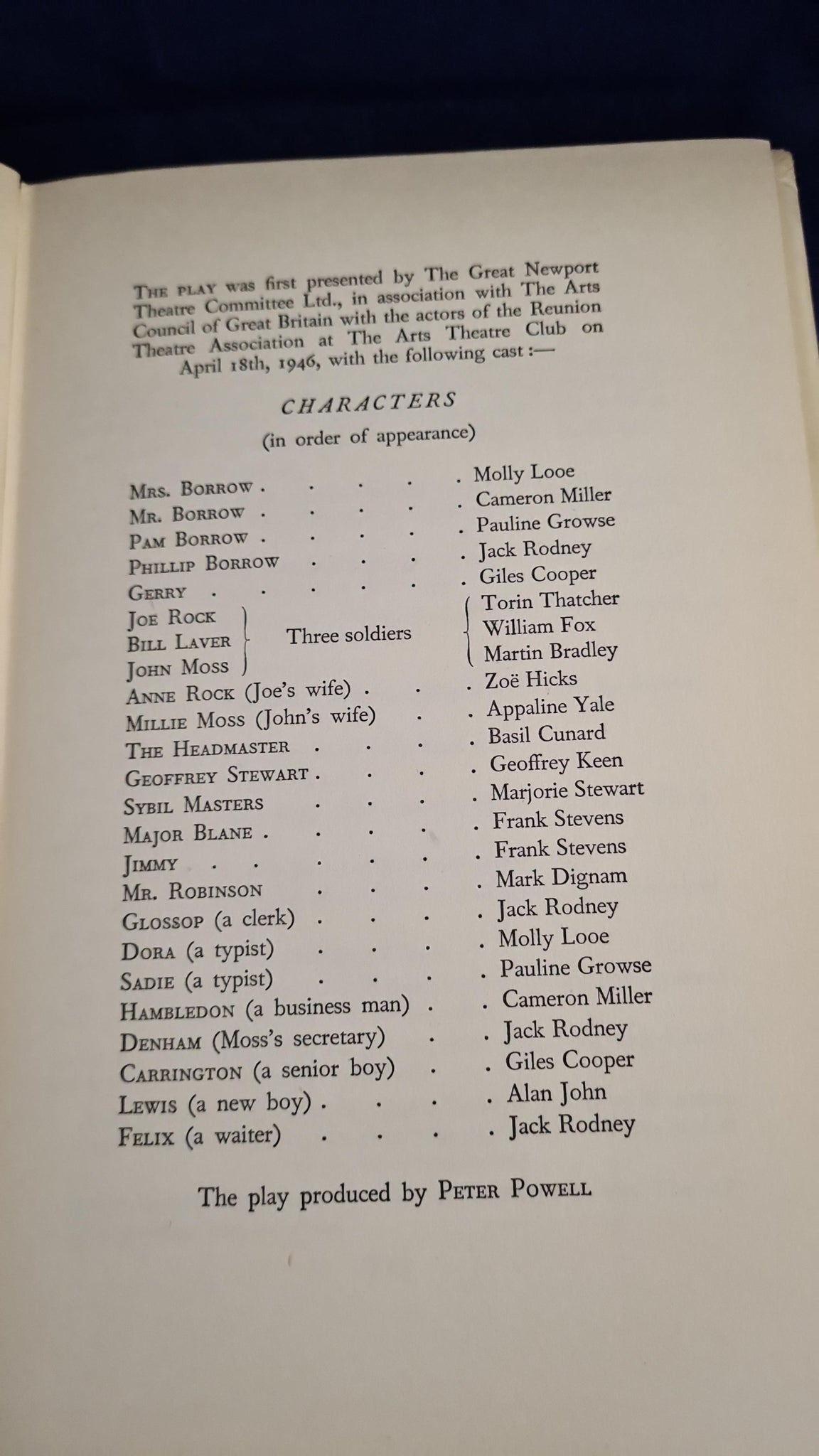 Presentation inscription on flyleaf and A.L.S. by Torin Thatcher (one of the actors in the play, also part-author). A Play. Letter to Dear Nellie and signed by Torin & Rita.