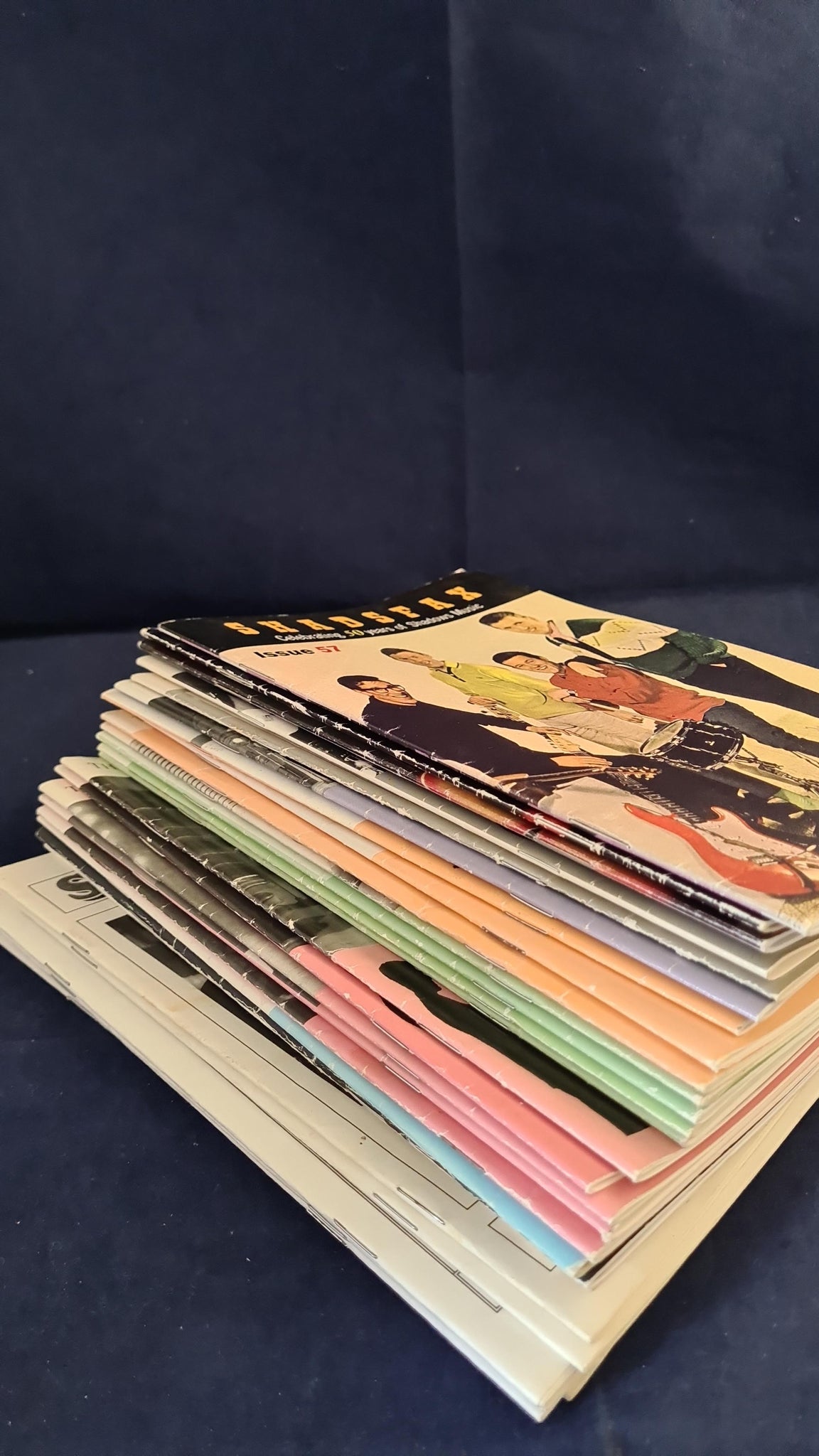 Twenty-eight magazines in fine condition. Issues 5 up to 57. Original black and white copies, then colour. Stains to some covers. Some copies like new. White leaves. Text firm and clean. Celebrating Shadows Music. Issue 57 celebrating 50 years of their music.