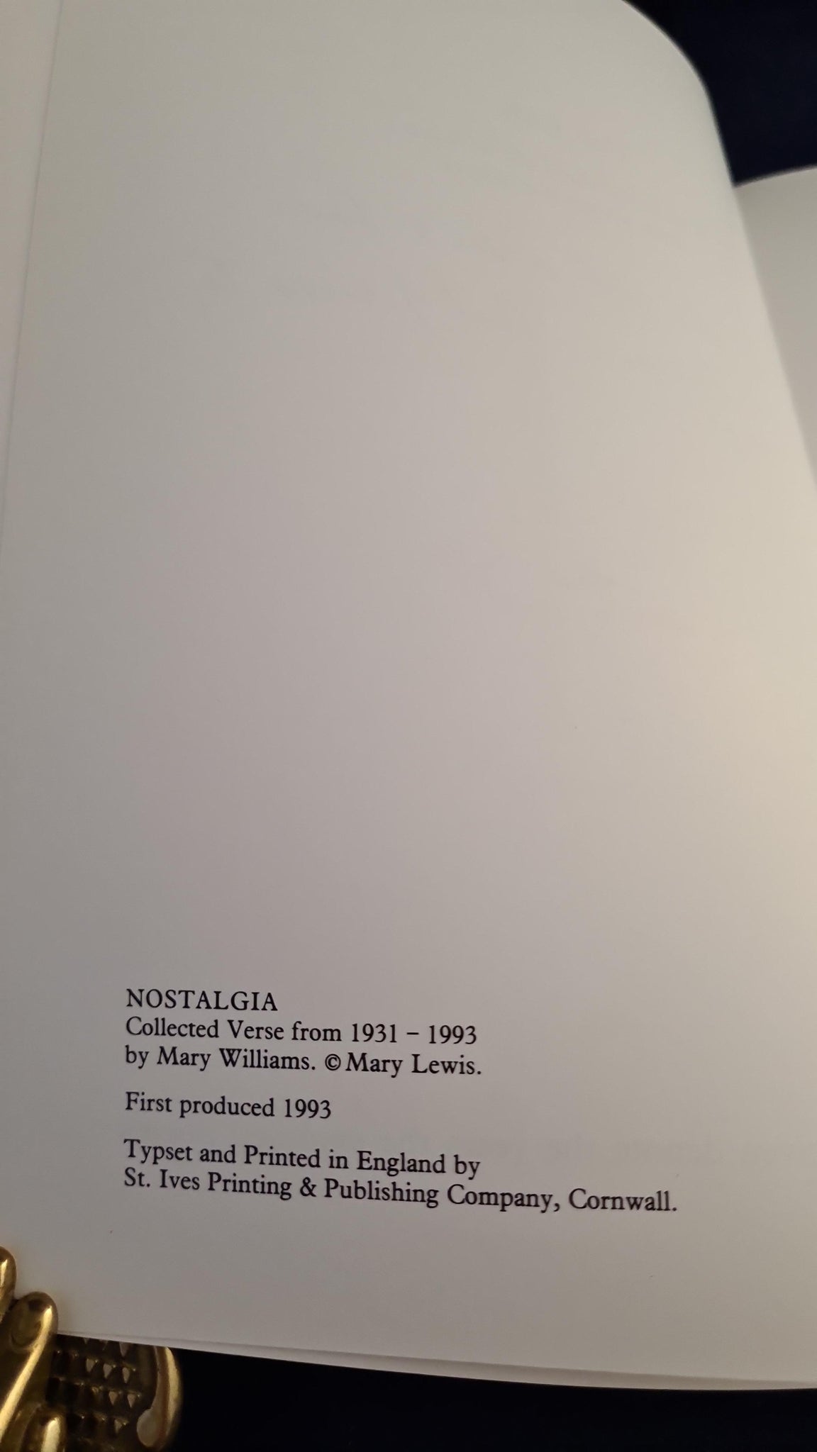 Mary Williams - Nostalgia, Collected Verse from 1931-1993