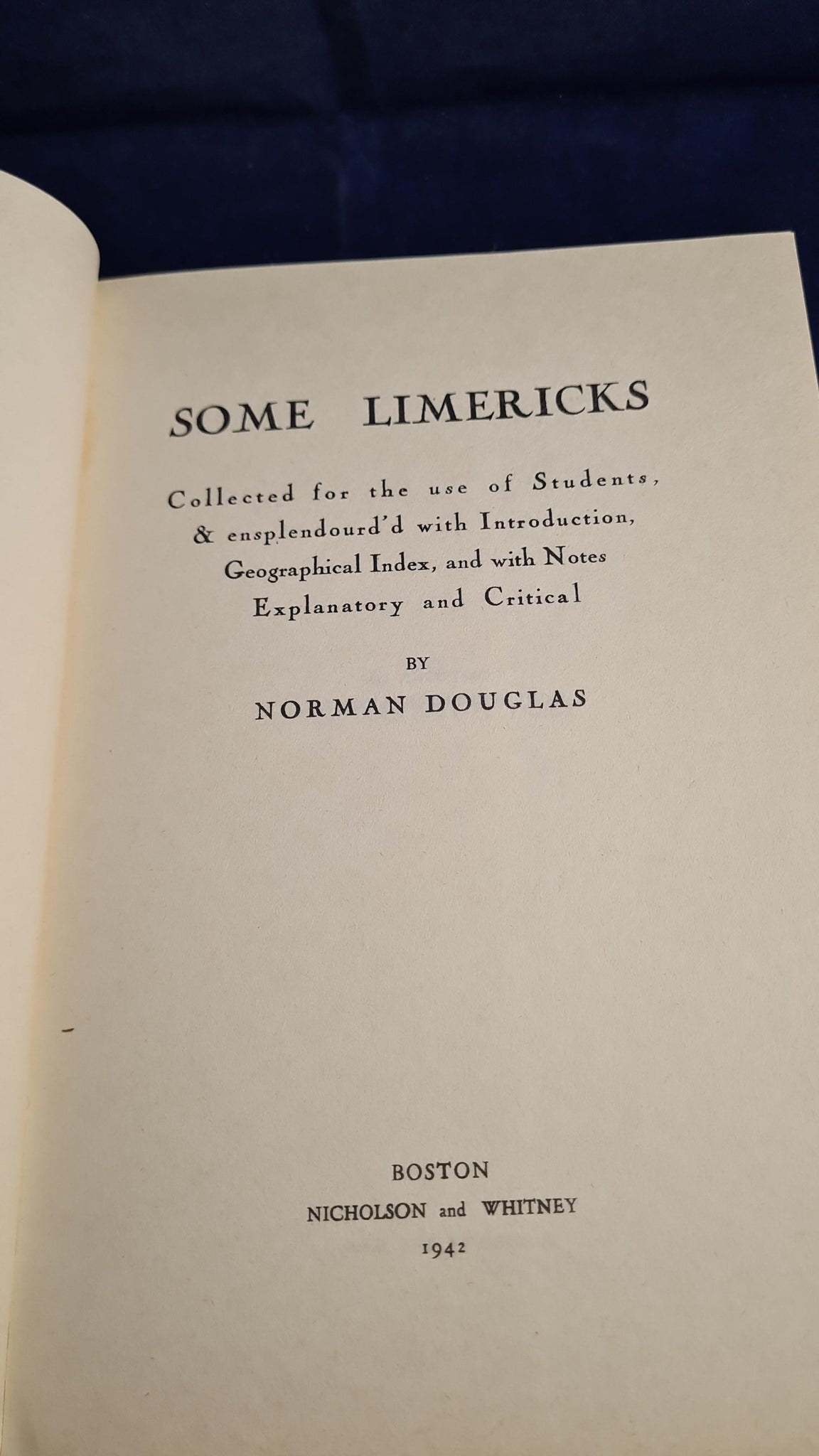 Norman Douglas - Some Limericks, Nicholson and Whitney, 1942