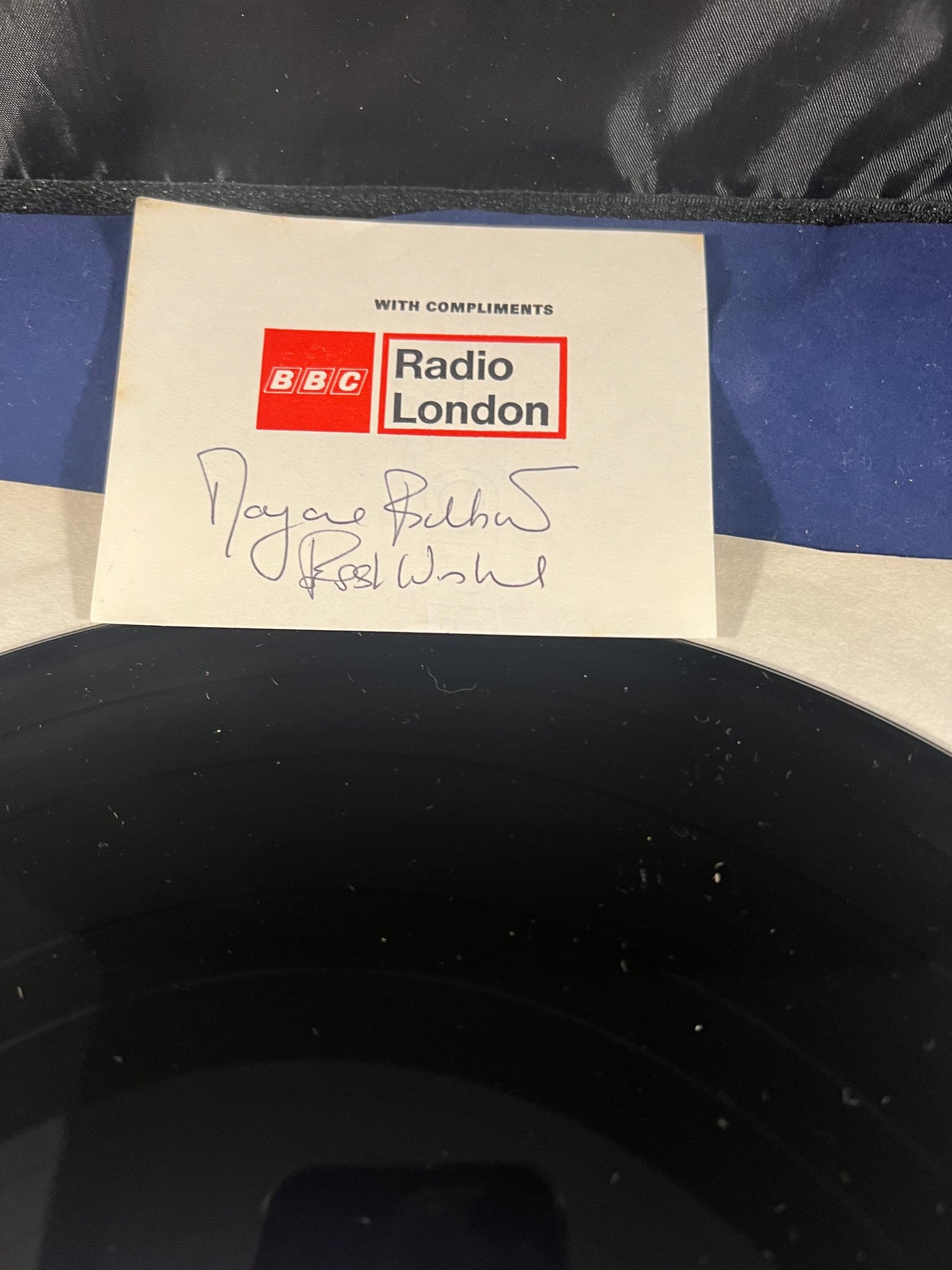 Description : Card case with one 12" vinyl. Signed by unknown person on a BBC Radio London business card.
