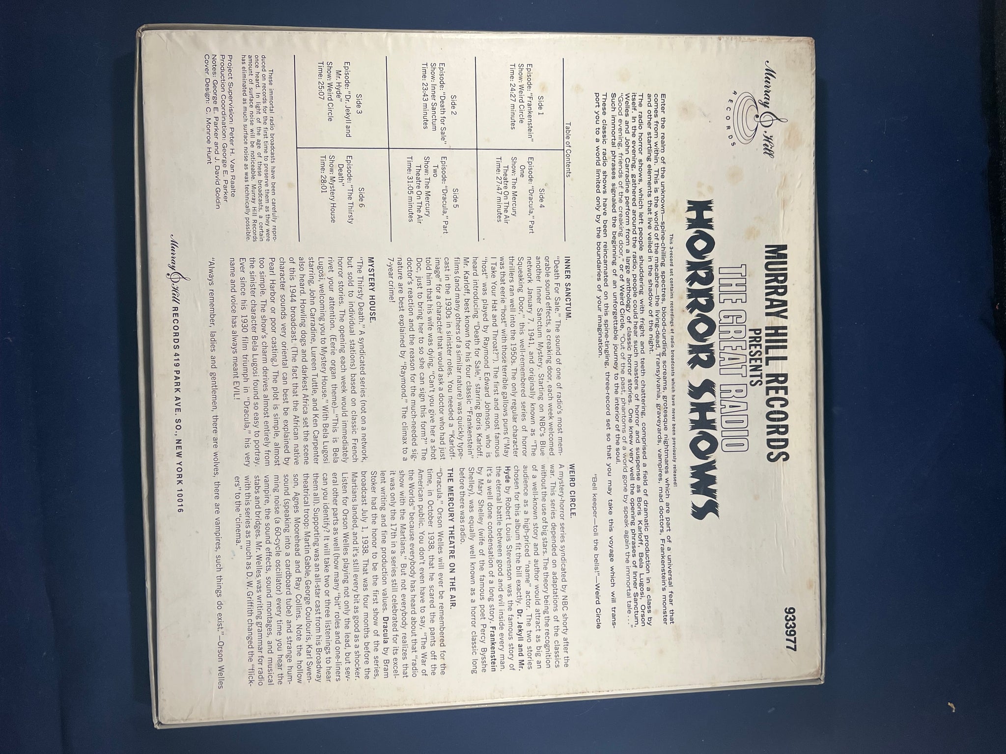 The Great Radio Horror Shows, 3 record set, 1975, Murray Hill Records.