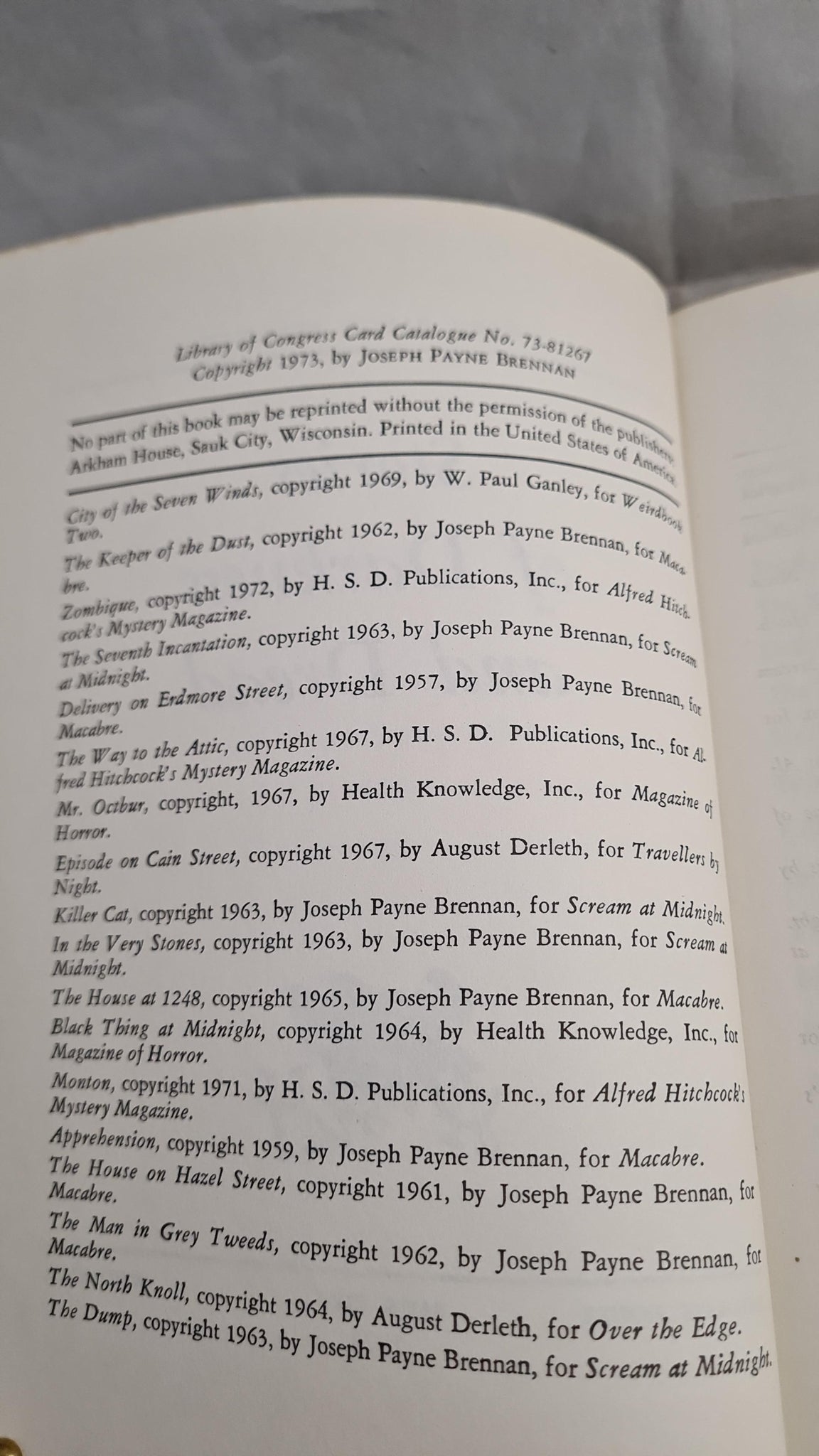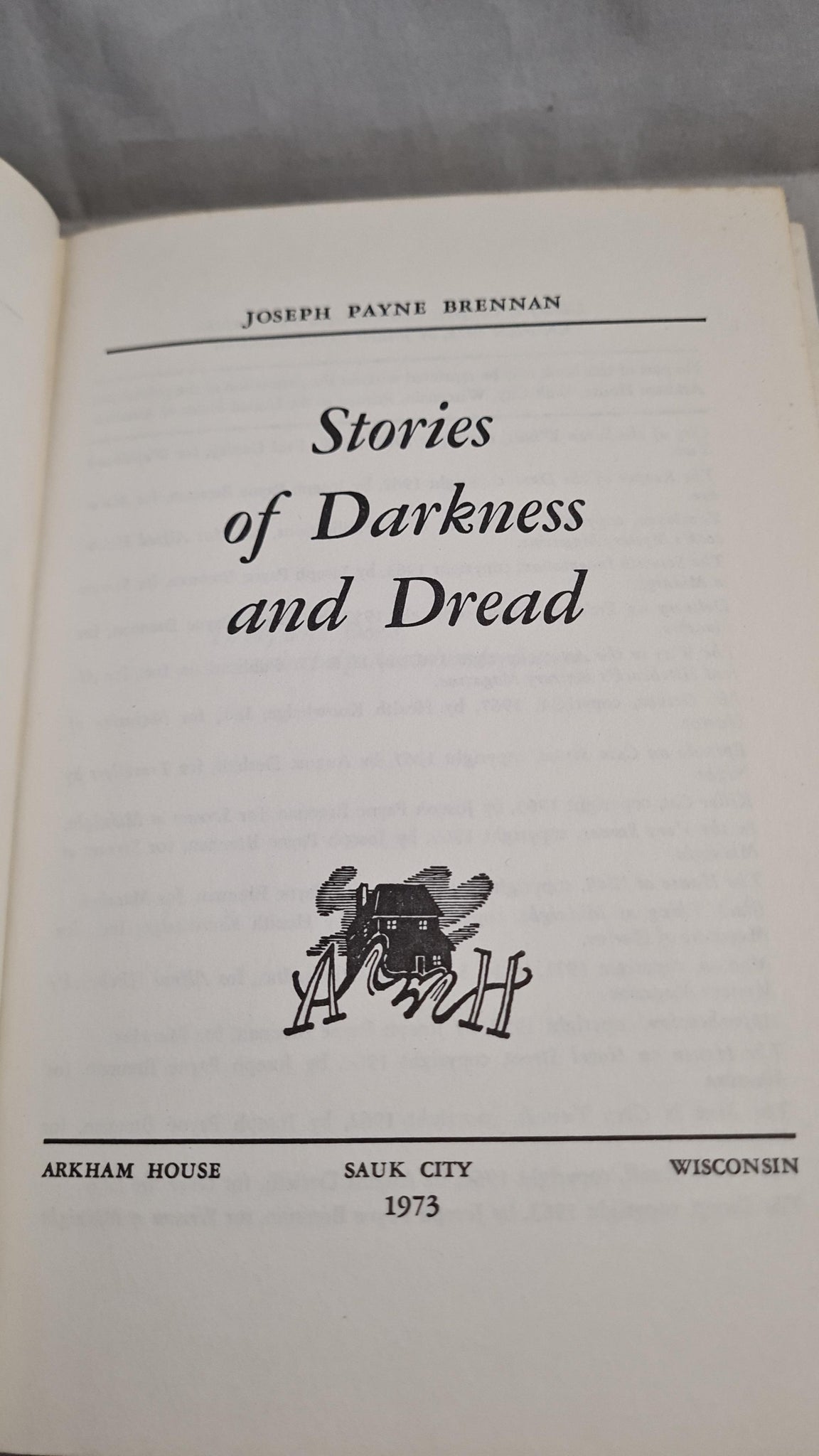Joseph Payne Brennan - Stories of Darkness and Dread, Arkham House, 1973, Limited
